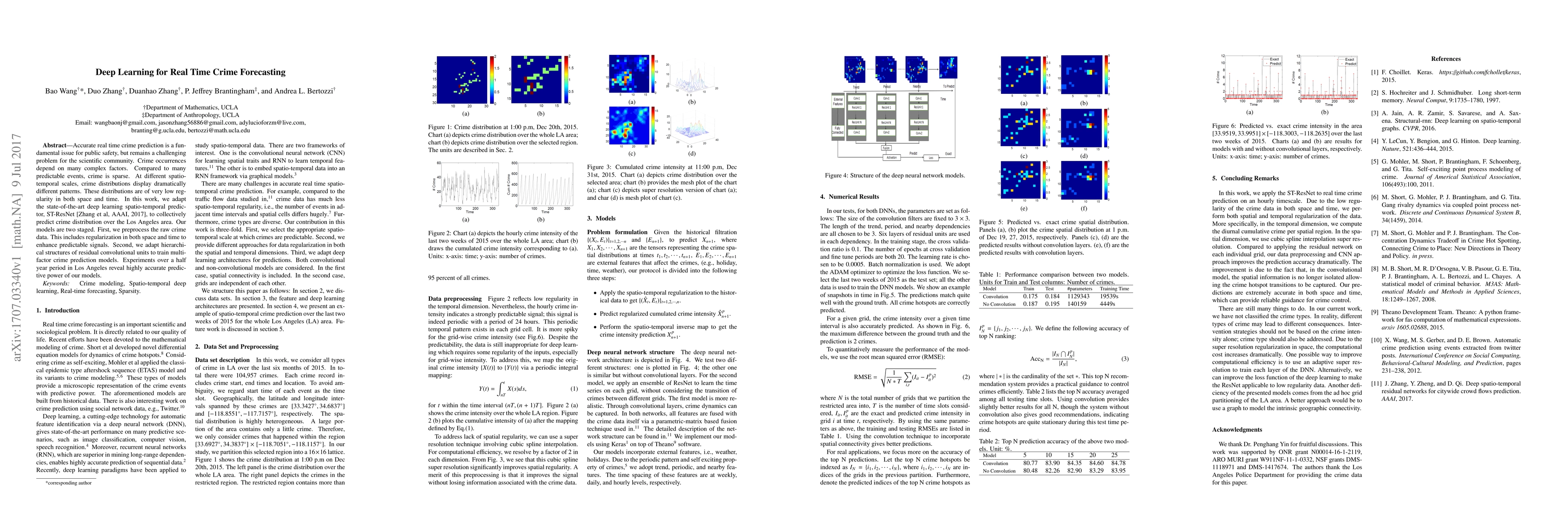 This paper adapts the ST-ResNet deep learning model to predict crime distribution in real time over Los Angeles, employing preprocessing and hierarchical residual convolutional units to handle the complex, sparse, and irregular nature of crime data, achieving high accuracy in predictions over a six-month period.