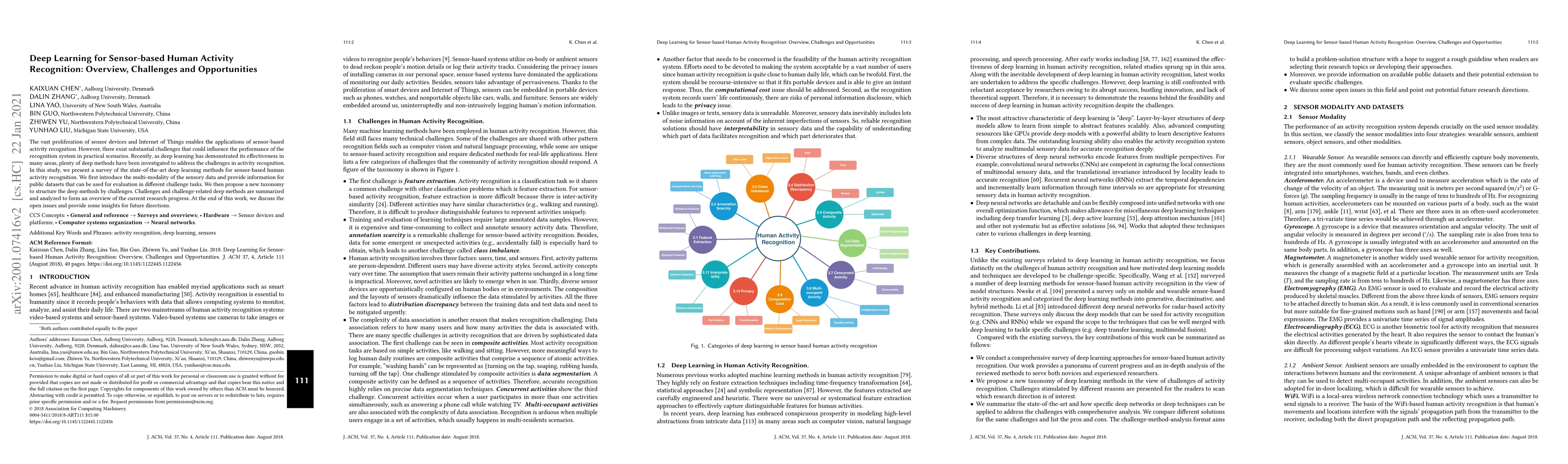 This paper surveys state-of-the-art deep learning methods for sensor-based human activity recognition, addressing the challenges posed by multi-modal sensory data. It proposes a new taxonomy to categorize these methods by specific challenges and discusses future research directions.