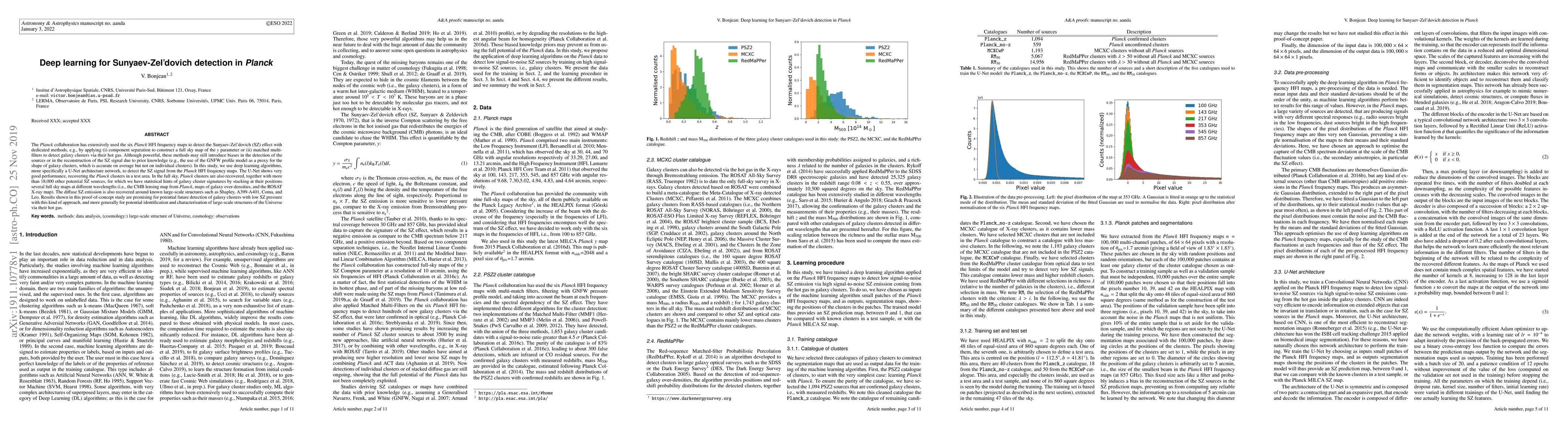 The Planck collaboration has extensively used the six Planck HFI frequency maps to detect the Sunyaev-Zel'dovich (SZ) effect with dedicated methods, e.g., by applying (i) component separation to construct a full sky map of the y parameter or (ii) matched multi-filters to detect galaxy clusters via their hot gas. Although powerful, these methods may still introduce biases in the detection of the sources or in the reconstruction of the SZ signal due to prior knowledge (e.g., the use of the GNFW profile model as a proxy for the shape of galaxy clusters, which is accurate on average but not on individual clusters). In this study, we use deep learning algorithms, more specifically a U-Net architecture network, to detect the SZ signal from the Planck HFI frequency maps. The U-Net shows very good performance, recovering the Planck clusters in a test area. In the full sky, Planck clusters are also recovered, together with more than 18,000 other potential SZ sources, for which we have statistical hints of galaxy cluster signatures by stacking at their positions several full sky maps at different wavelengths (i.e., the CMB lensing map from Planck, maps of galaxy over-densities, and the ROSAT X-ray map). The diffuse SZ emission is also recovered around known large-scale structures such as Shapley, A399-A401, Coma, and Leo. Results shown in this proof-of-concept study are promising for potential future detection of galaxy clusters with low SZ pressure with this kind of approach, and more generally for potential identification and characterisation of large-scale structures of the Universe via their hot gas.