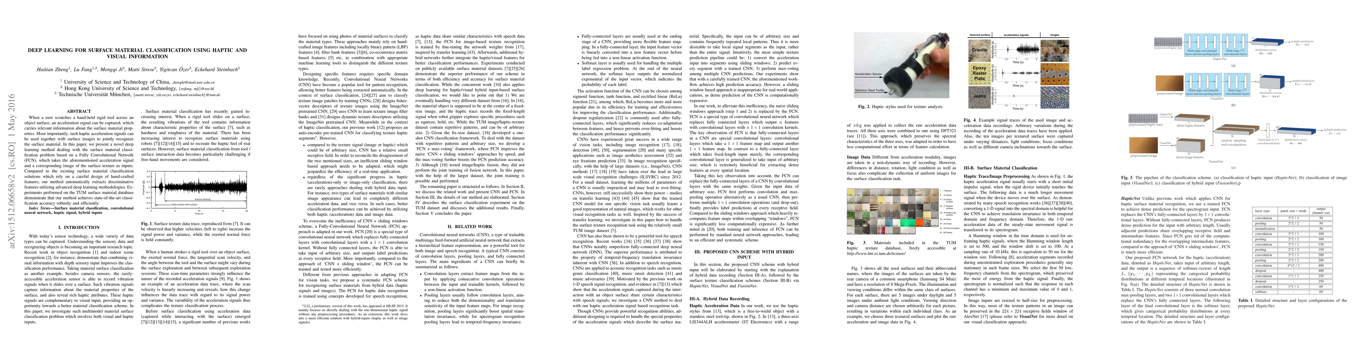 A new deep learning method uses both haptic and visual information to classify surface materials with high accuracy. The approach outperforms previous methods that relied on hand-crafted features.