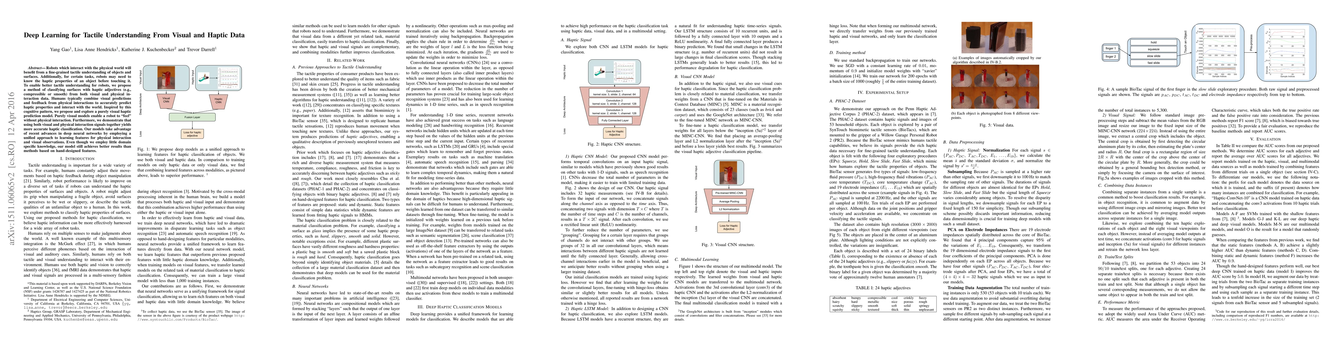 This paper proposes a deep learning method to classify tactile properties of objects using both visual and haptic data, aiming to enhance robots' understanding of physical interactions. The model achieves better classification accuracy by integrating visual predictions with haptic feedback, demonstrating improved performance over traditional hand-designed feature methods.