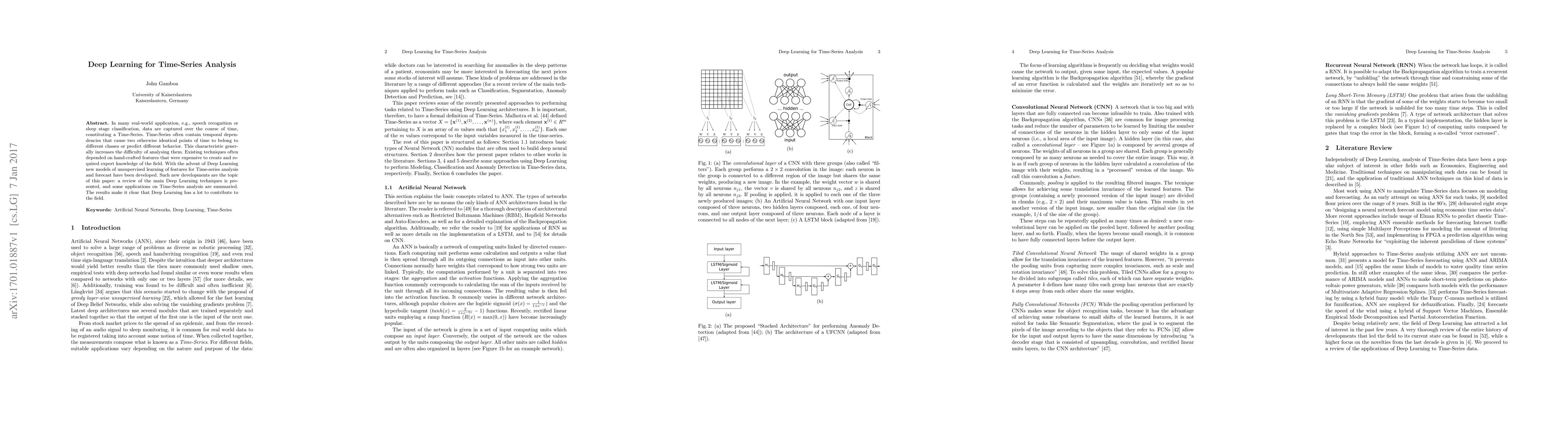 This paper reviews advanced Deep Learning techniques for Time-Series analysis, highlighting their ability to learn features automatically, which contrasts with traditional methods reliant on hand-crafted features. The study demonstrates the effectiveness of these new models through various applications, underscoring Deep Learning's potential to significantly enhance time-series analysis and forecasting.