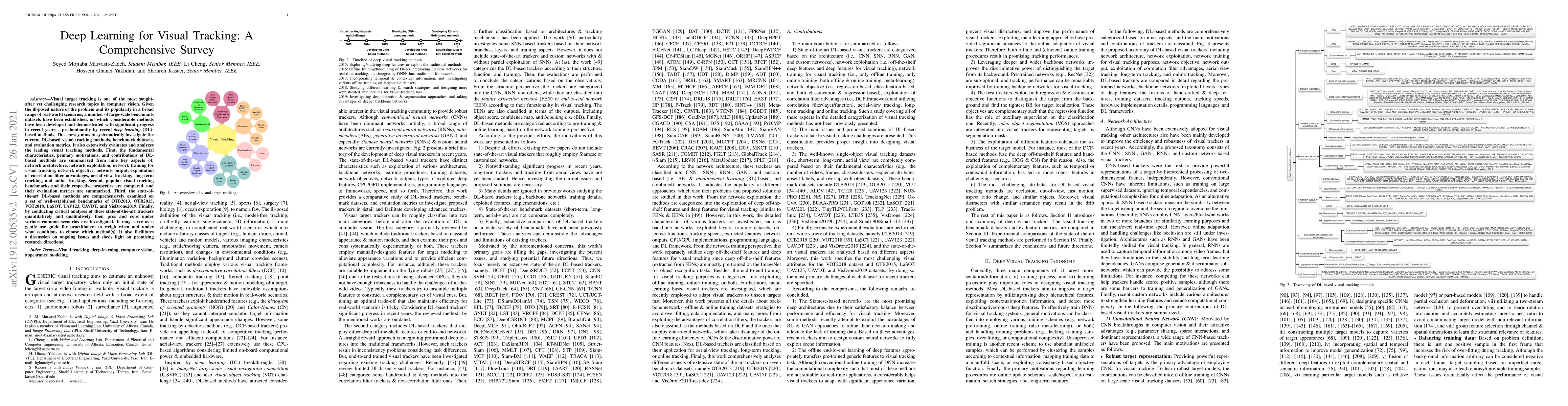 This paper provides a comprehensive survey of deep learning-based visual tracking methods, comparing their network architecture, training, and performance metrics. It evaluates state-of-the-art trackers on multiple benchmarks and analyzes their strengths and weaknesses to guide practitioners in selecting appropriate tracking methods.
