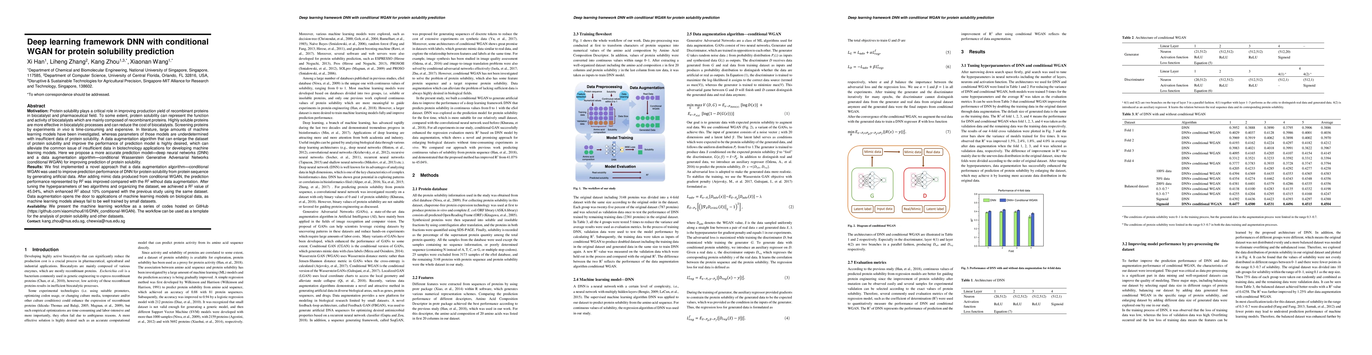 A novel approach using conditional WGAN data augmentation improves protein solubility prediction performance by 10% compared to existing methods, enhancing the field of biotechnology applications for machine learning models.