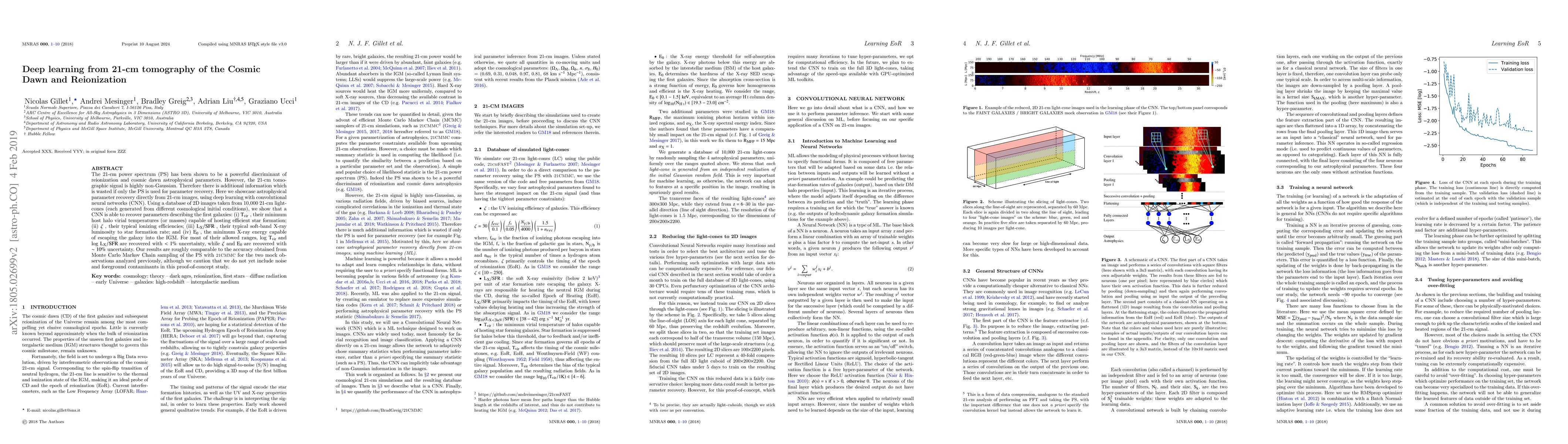 This research explores the use of deep learning techniques, specifically convolutional neural networks (CNNs), to extract astrophysical parameters from 21-cm tomography images during the Cosmic Dawn and Reionization. The study demonstrates that CNNs can recover key parameters related to the first galaxies with high accuracy, suggesting a promising alternative to traditional methods that rely on the 21-cm power spectrum.