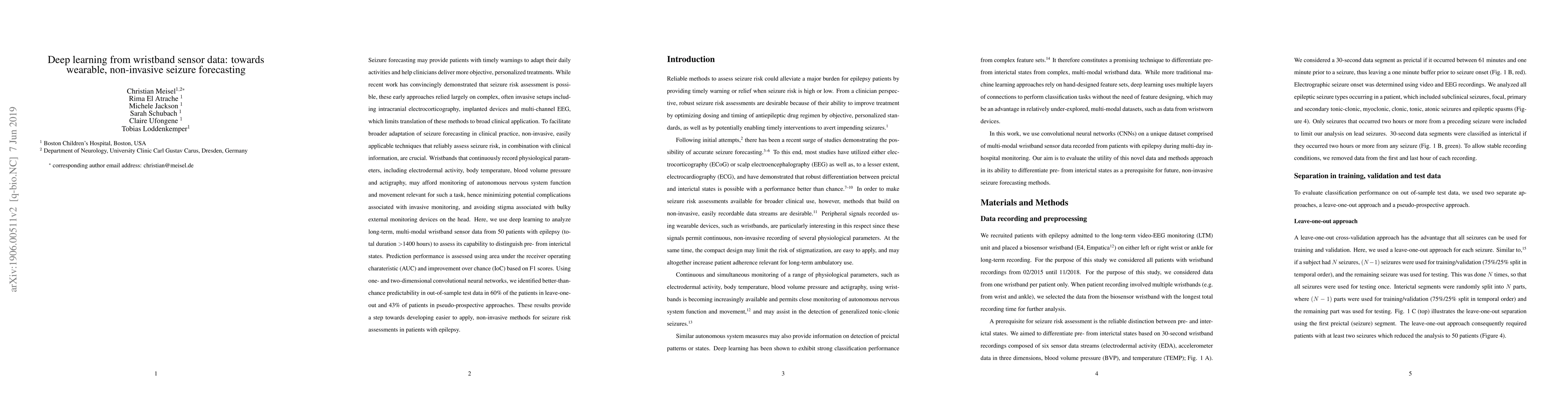 Researchers used deep learning to analyze wristband sensor data from 50 patients with epilepsy to develop a non-invasive method for seizure risk assessment. They found that their approach could distinguish preictal states from interictal states in 60% of cases.