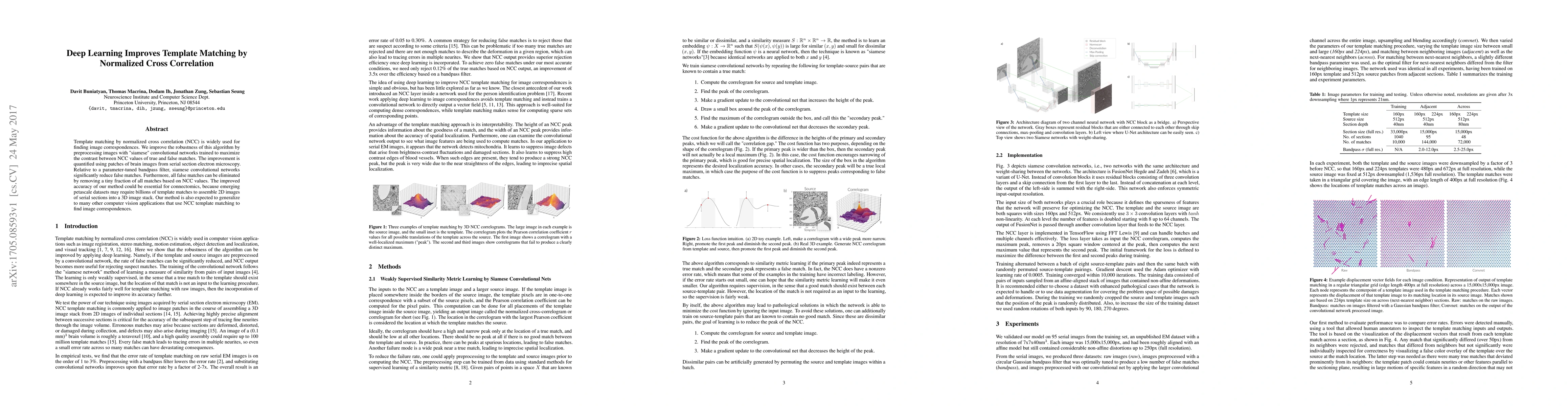 Researchers improved template matching by normalized cross correlation using siamese convolutional networks, reducing false matches and enabling accurate assembly of 3D images from serial sections.