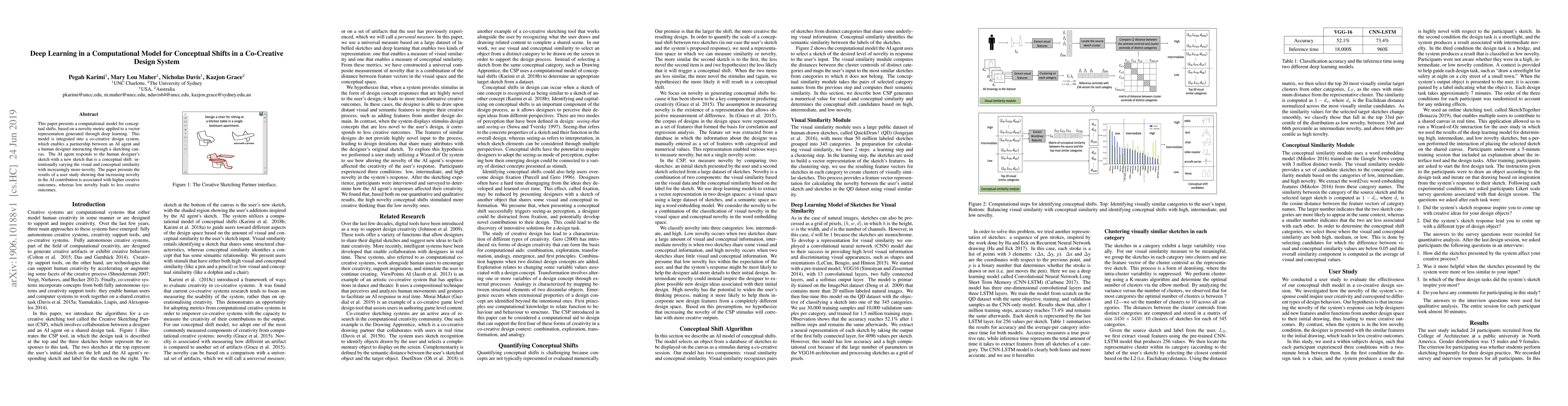 This paper introduces a computational model using deep learning to measure conceptual shifts in a co-creative design system, where an AI agent and human designer collaborate on a sketching canvas. Results from a user study indicate that higher novelty in AI-generated sketches correlates with more creative outcomes.