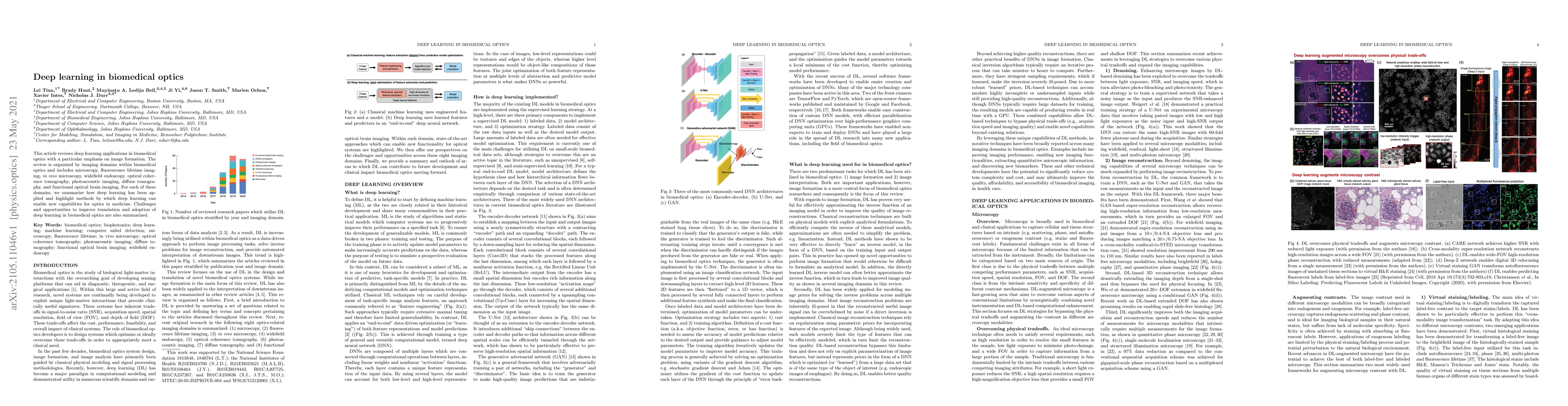 This paper reviews deep learning applications in various biomedical optics domains, highlighting how deep learning enhances image formation and enables new capabilities in medicine. It also discusses challenges and opportunities for improving the translation and adoption of deep learning in this field.