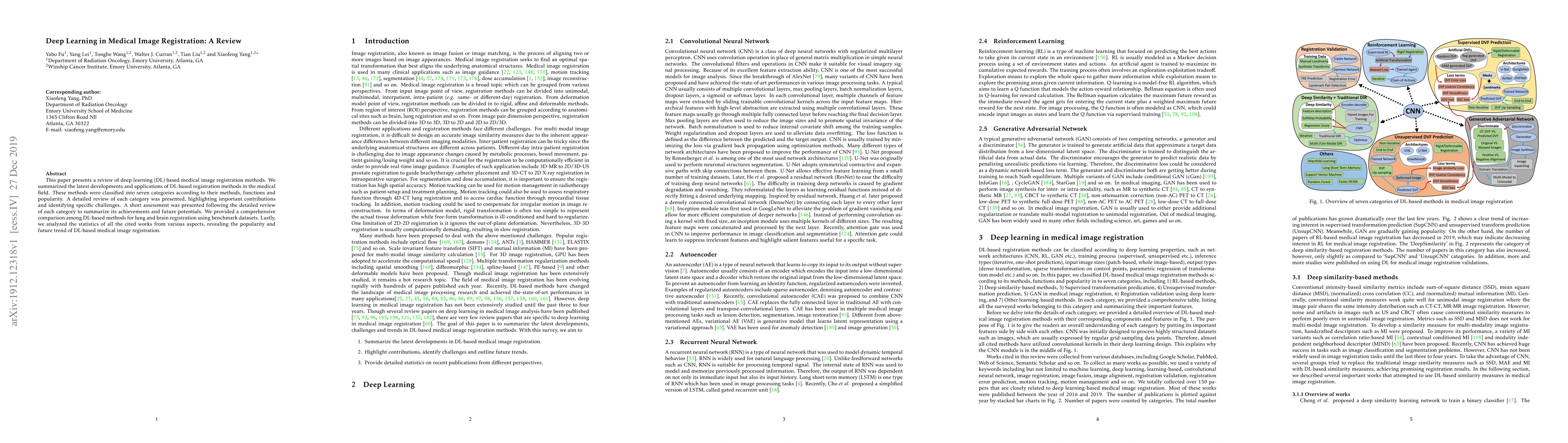 The paper categorizes and systematically reviews DL methods for medical image registration, offering a detailed analysis of their strengths, weaknesses, and applications.