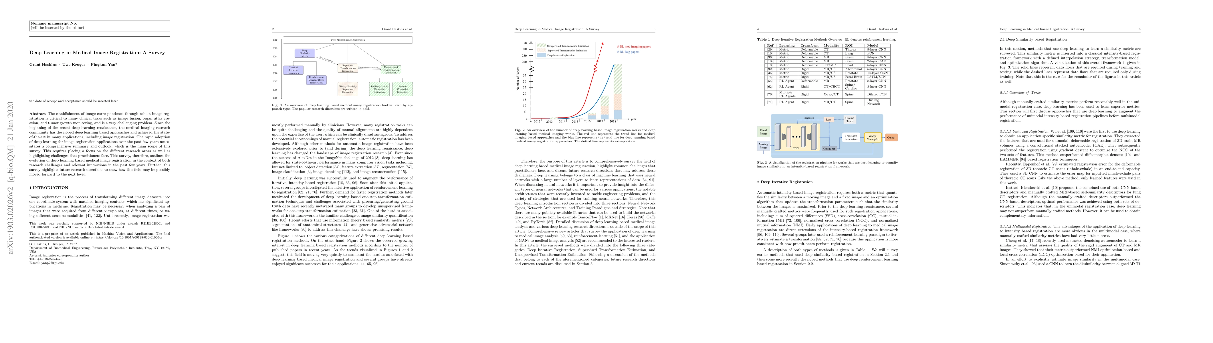 This survey reviews the advancements in deep learning for medical image registration, emphasizing its critical role in clinical tasks like image fusion and tumor monitoring. It highlights the challenges and innovations in this field, and outlines future research directions to propel the next generation of developments.
