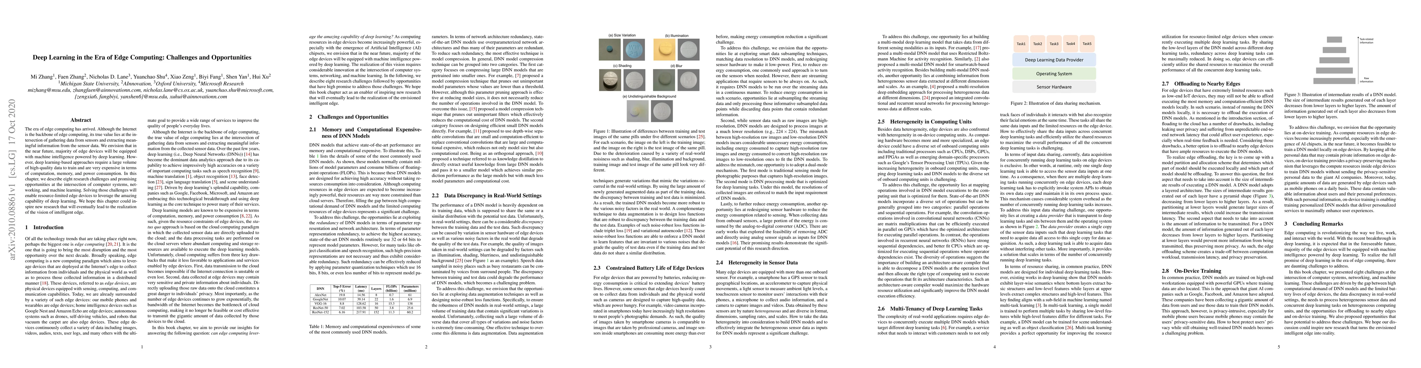 The era of edge computing has arrived. Although the Internet is the backbone of edge computing, its true value lies at the intersection of gathering data from sensors and extracting meaningful information from the sensor data. We envision that in the near future, majority of edge devices will be equipped with machine intelligence powered by deep learning. However, deep learning-based approaches require a large volume of high-quality data to train and are very expensive in terms of computation, memory, and power consumption. In this chapter, we describe eight research challenges and promising opportunities at the intersection of computer systems, networking, and machine learning. Solving those challenges will enable resource-limited edge devices to leverage the amazing capability of deep learning. We hope this chapter could inspire new research that will eventually lead to the realization of the vision of intelligent edge.