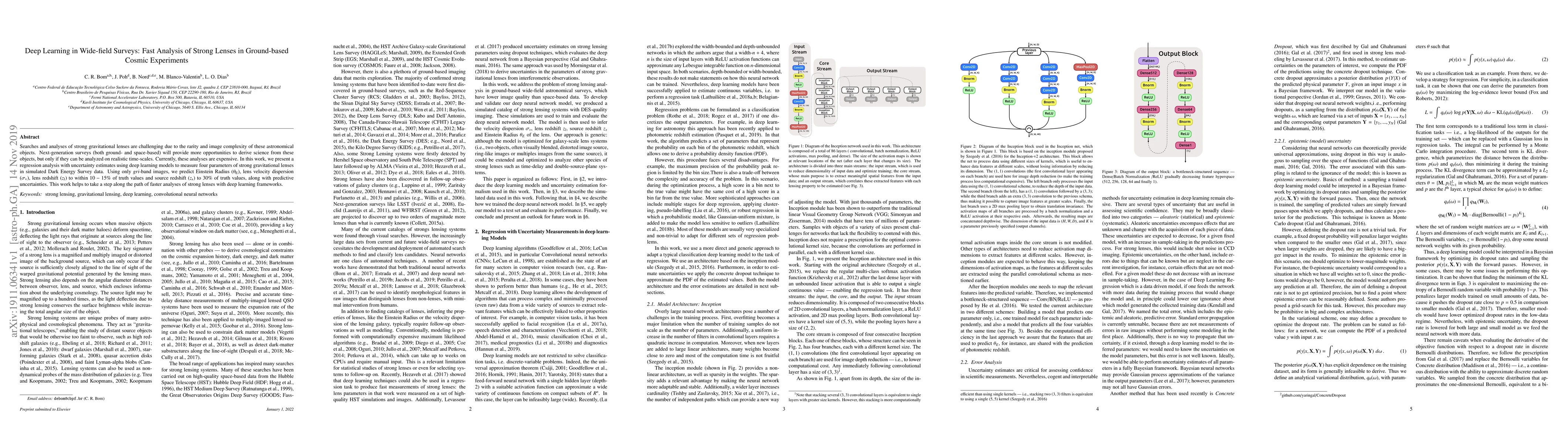 This paper introduces a deep learning approach to rapidly analyze strong gravitational lenses in wide-field surveys, achieving accurate predictions of lens parameters using regression models on simulated Dark Energy Survey data. The method demonstrates the potential for faster, cost-effective lens analysis in upcoming cosmic experiments.