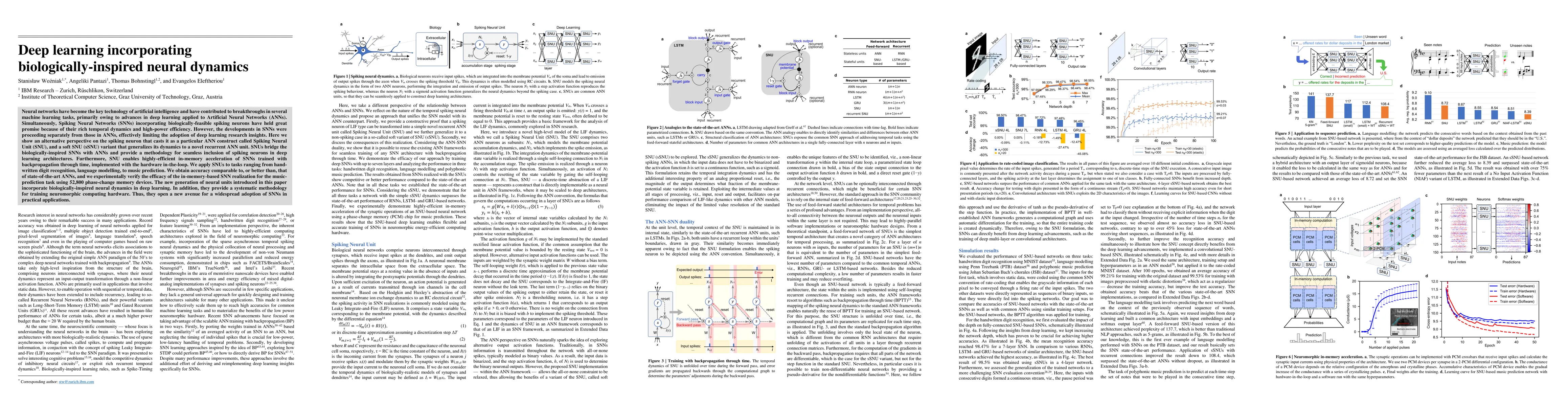 Neural networks have become the key technology of artificial intelligence and have contributed to breakthroughs in several machine learning tasks, primarily owing to advances in deep learning applied to Artificial Neural Networks (ANNs). Simultaneously, Spiking Neural Networks (SNNs) incorporating biologically-feasible spiking neurons have held great promise because of their rich temporal dynamics and high-power efficiency. However, the developments in SNNs were proceeding separately from those in ANNs, effectively limiting the adoption of deep learning research insights. Here we show an alternative perspective on the spiking neuron that casts it as a particular ANN construct called Spiking Neural Unit (SNU), and a soft SNU (sSNU) variant that generalizes its dynamics to a novel recurrent ANN unit. SNUs bridge the biologically-inspired SNNs with ANNs and provide a methodology for seamless inclusion of spiking neurons in deep learning architectures. Furthermore, SNU enables highly-efficient in-memory acceleration of SNNs trained with backpropagation through time, implemented with the hardware in-the-loop. We apply SNUs to tasks ranging from hand-written digit recognition, language modelling, to music prediction. We obtain accuracy comparable to, or better than, that of state-of-the-art ANNs, and we experimentally verify the efficacy of the in-memory-based SNN realization for the music-prediction task using 52,800 phase-change memory devices. The new generation of neural units introduced in this paper incorporate biologically-inspired neural dynamics in deep learning. In addition, they provide a systematic methodology for training neuromorphic computing hardware. Thus, they open a new avenue for a widespread adoption of SNNs in practical applications.