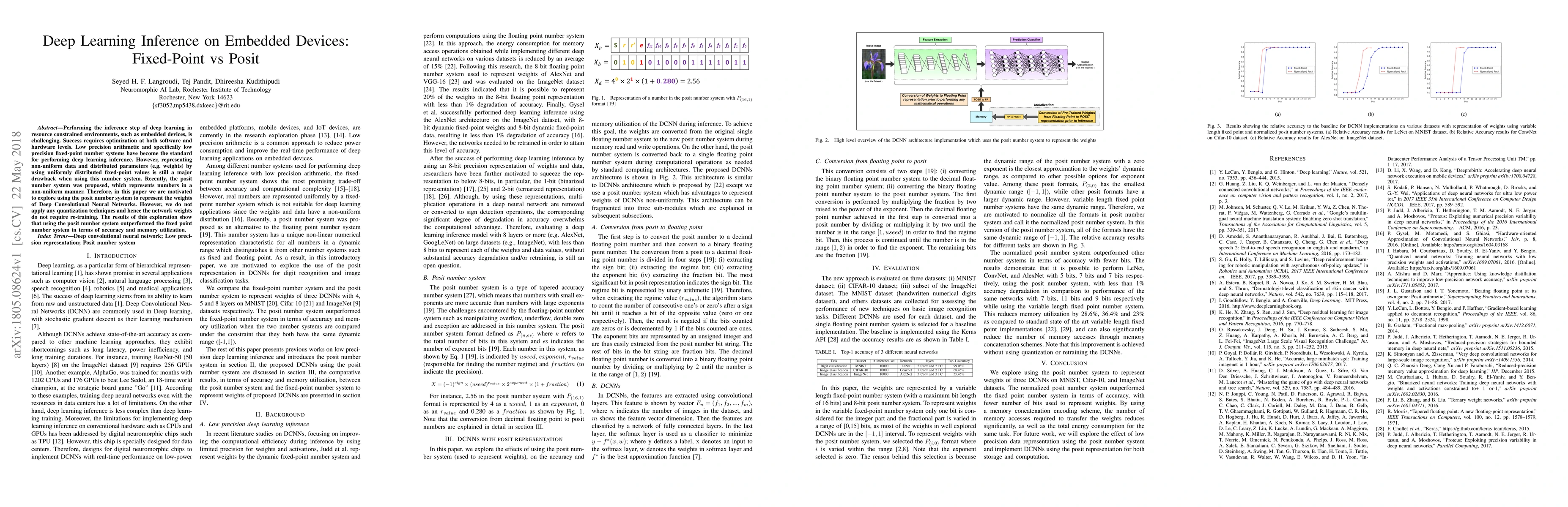 This paper compares the performance of deep learning inference on embedded devices using fixed-point versus posit number systems. It finds that posit representation, which is non-uniform, outperforms fixed-point in terms of both accuracy and memory efficiency without requiring network re-training.