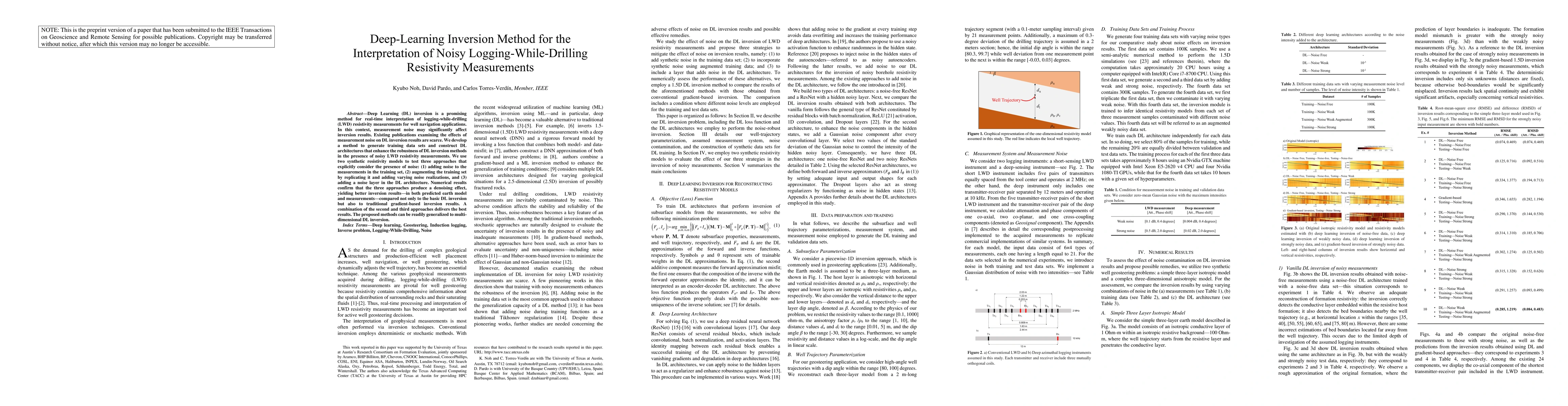 The paper presents a novel deep-learning inversion method that incorporates noise-handling strategies in both training data sets and the deep learning architecture, improving the interpretation of noisy LWD resistivity measurements.