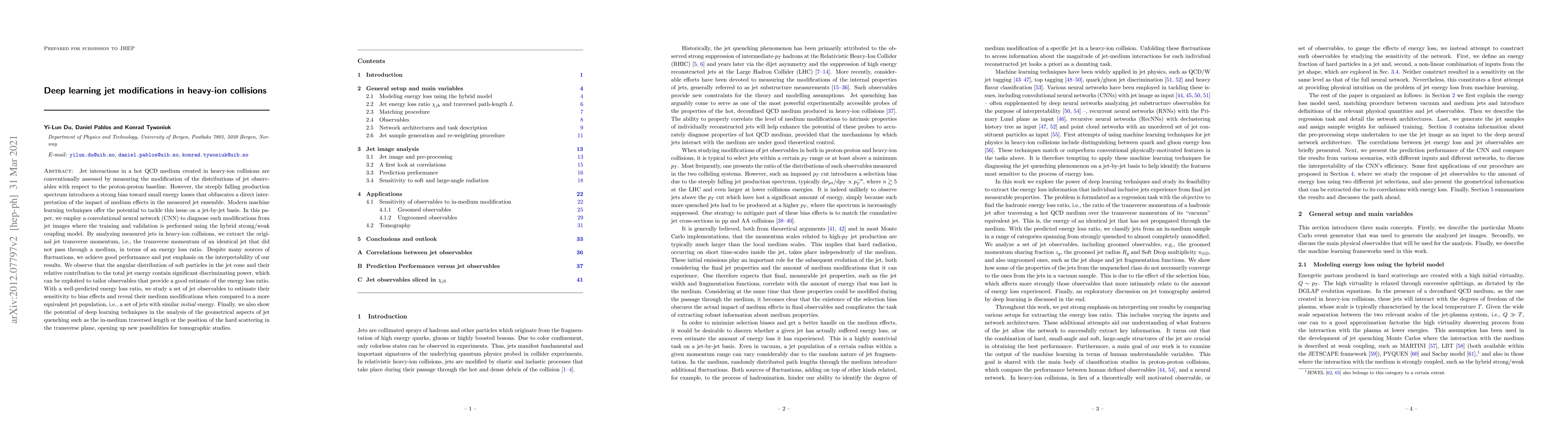 Researchers used a convolutional neural network to analyze jet modifications in heavy-ion collisions, extracting original jet transverse momentum and finding that angular distribution of soft particles can estimate energy loss ratio with good performance.