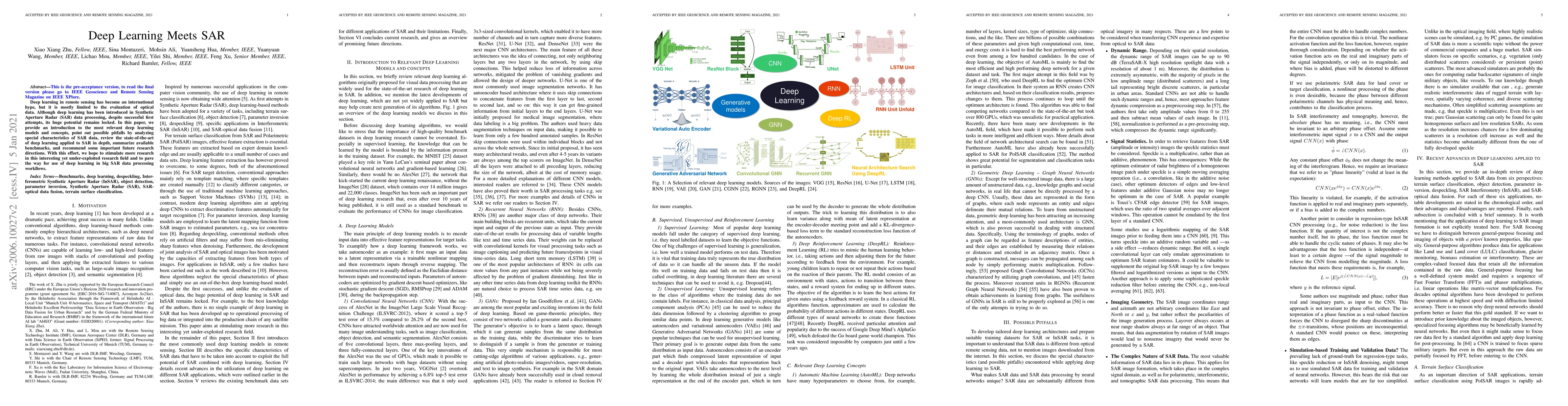 This paper introduces deep learning models and concepts for Synthetic Aperture Radar (SAR) data processing, highlighting its under-exploited potential. It reviews current state-of-the-art applications, benchmarks, and future research directions, aiming to stimulate further research in this promising field.