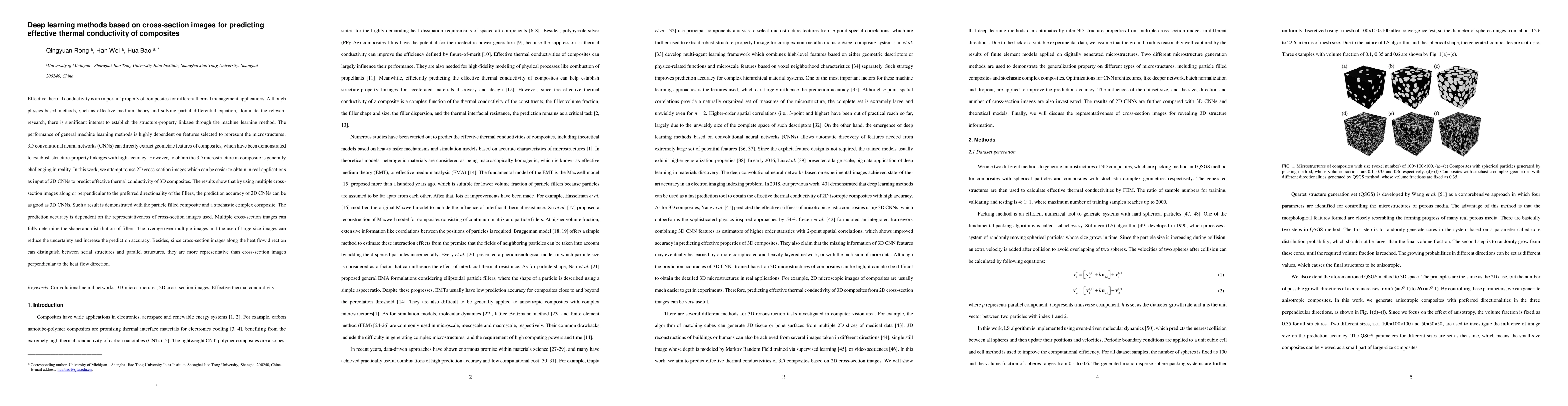 This paper explores the use of 2D cross-section images and 2D convolutional neural networks (CNNs) to predict the effective thermal conductivity of 3D composites, demonstrating that multiple cross-section images can achieve prediction accuracy comparable to 3D CNNs. The study highlights that the representativeness and orientation of cross-section images significantly influence the prediction accuracy.