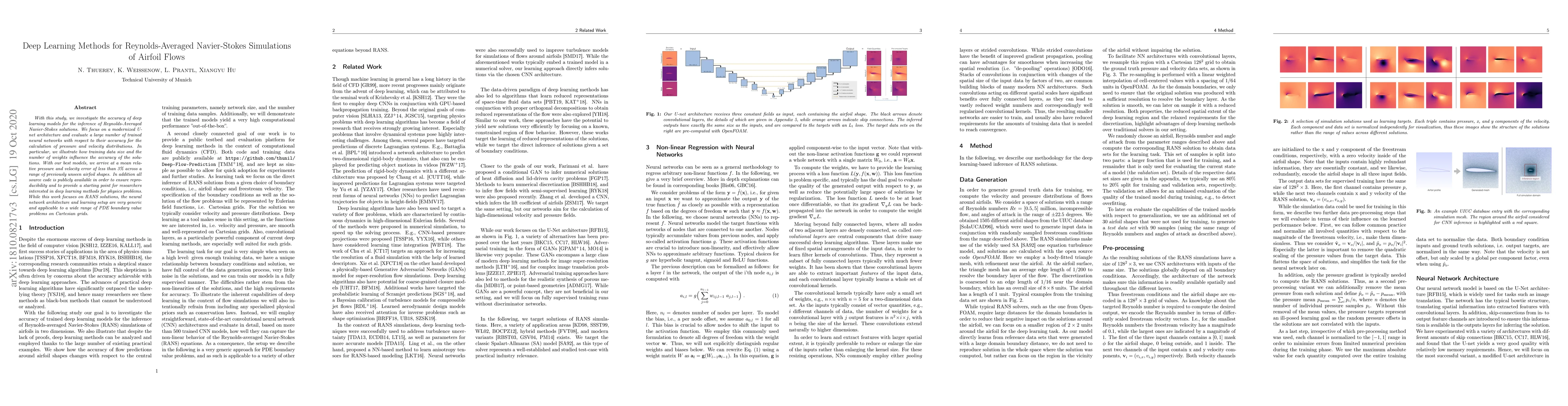 This study evaluates deep learning models, specifically a modernized U-net architecture, for predicting Reynolds-Averaged Navier-Stokes (RANS) solutions in airfoil flows, achieving less than 3% mean relative error. The research highlights the impact of training data size and network complexity on accuracy, with all source code made publicly available for reproducibility.