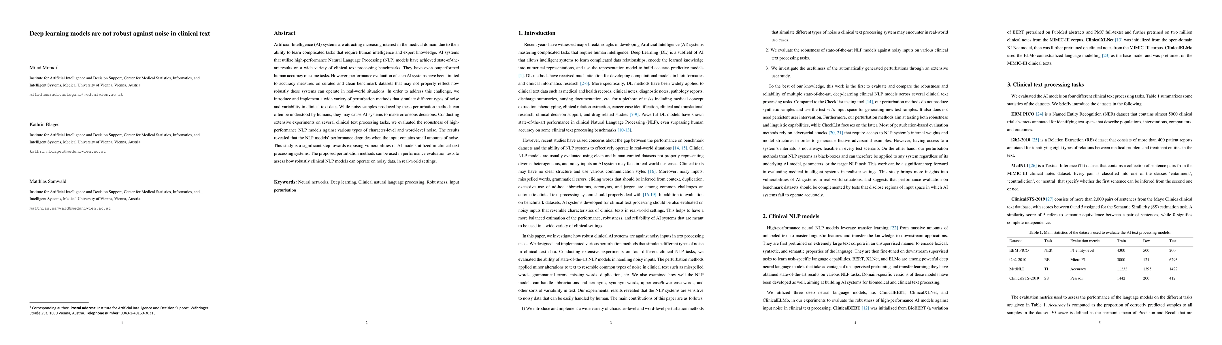 The study introduces perturbation methods to simulate noise in clinical text data, providing a step towards assessing the robustness of AI models in clinical settings.