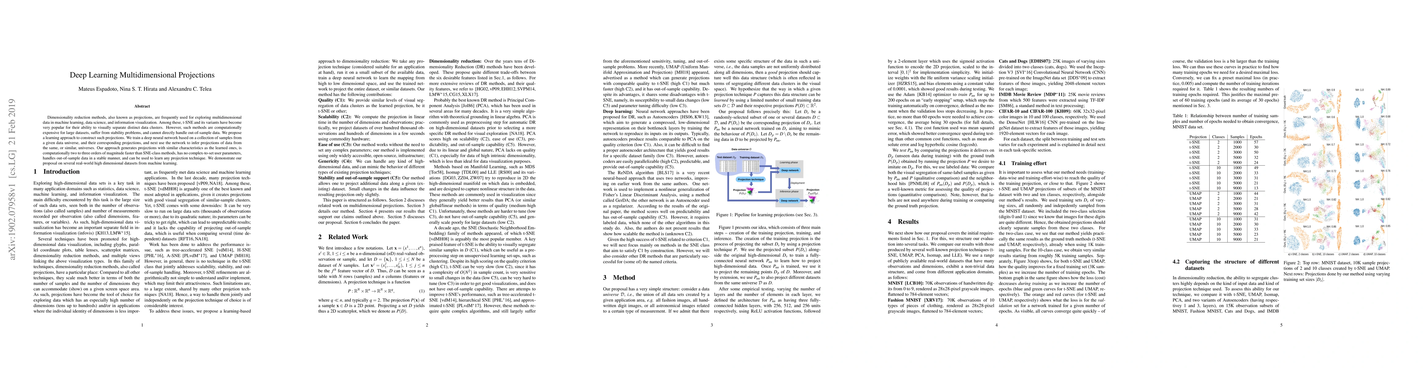 Researchers propose a deep learning approach to create multidimensional projections that can handle large datasets and out-of-sample data, offering significant computational speedups over traditional methods like t-SNE.