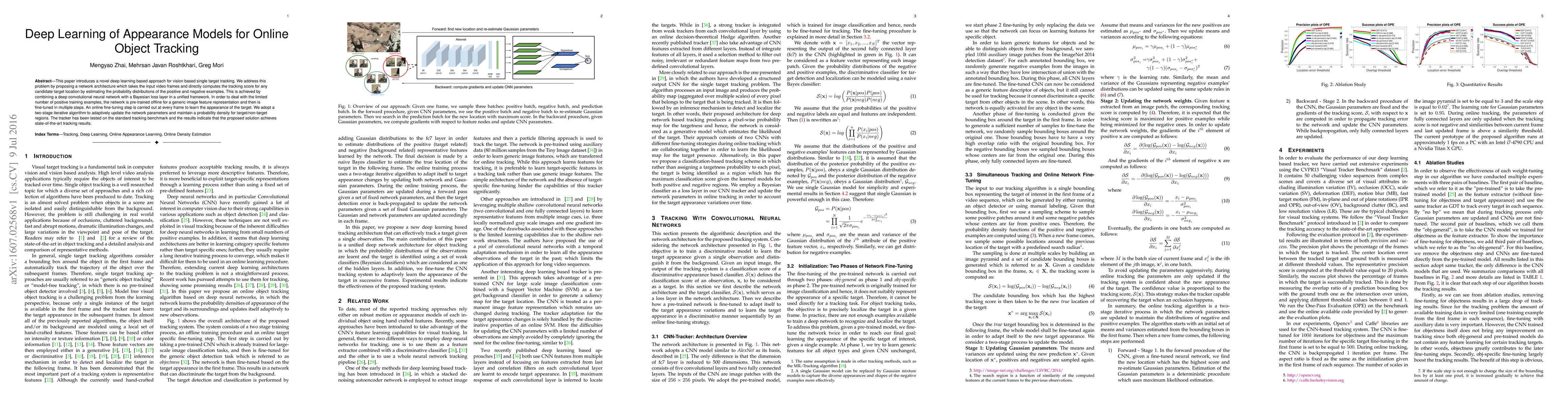 This paper introduces a novel deep learning based approach for vision based single target tracking. We address this problem by proposing a network architecture which takes the input video frames and directly computes the tracking score for any candidate target location by estimating the probability distributions of the positive and negative examples. This is achieved by combining a deep convolutional neural network with a Bayesian loss layer in a unified framework. In order to deal with the limited number of positive training examples, the network is pre-trained offline for a generic image feature representation and then is fine-tuned in multiple steps. An online fine-tuning step is carried out at every frame to learn the appearance of the target. We adopt a two-stage iterative algorithm to adaptively update the network parameters and maintain a probability density for target/non-target regions. The tracker has been tested on the standard tracking benchmark and the results indicate that the proposed solution achieves state-of-the-art tracking results.