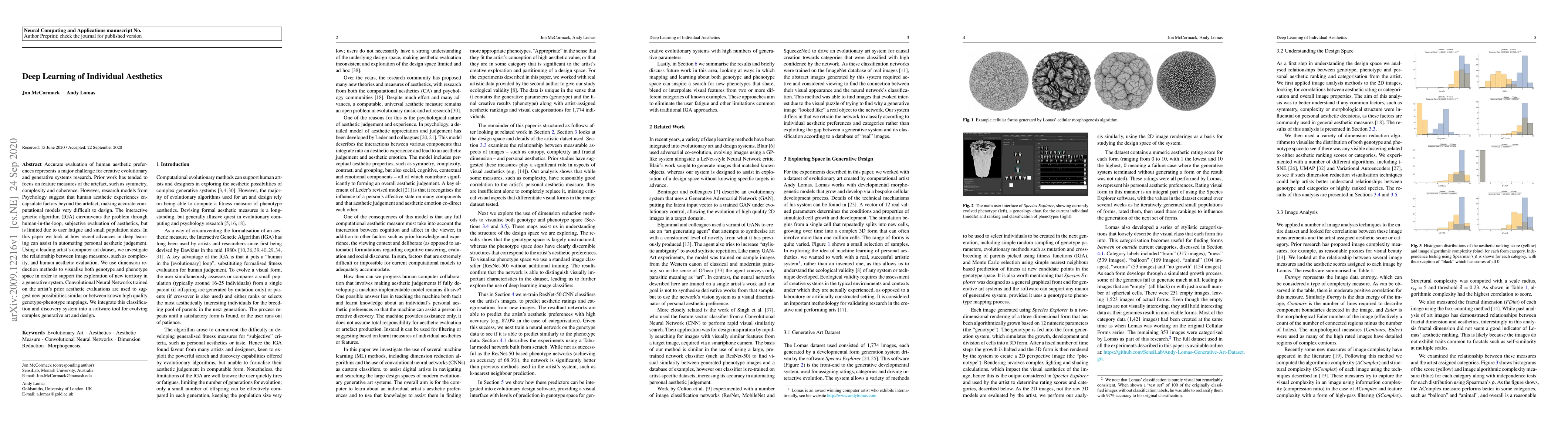 Accurate evaluation of human aesthetic preferences represents a major challenge for creative evolutionary and generative systems research. Prior work has tended to focus on feature measures of the artefact, such as symmetry, complexity and coherence. However, research models from Psychology suggest that human aesthetic experiences encapsulate factors beyond the artefact, making accurate computational models very difficult to design. The interactive genetic algorithm (IGA) circumvents the problem through human-in-the-loop, subjective evaluation of aesthetics, but is limited due to user fatigue and small population sizes. In this paper we look at how recent advances in deep learning can assist in automating personal aesthetic judgement. Using a leading artist's computer art dataset, we investigate the relationship between image measures, such as complexity, and human aesthetic evaluation. We use dimension reduction methods to visualise both genotype and phenotype space in order to support the exploration of new territory in a generative system. Convolutional Neural Networks trained on the artist's prior aesthetic evaluations are used to suggest new possibilities similar or between known high quality genotype-phenotype mappings. We integrate this classification and discovery system into a software tool for evolving complex generative art and design.