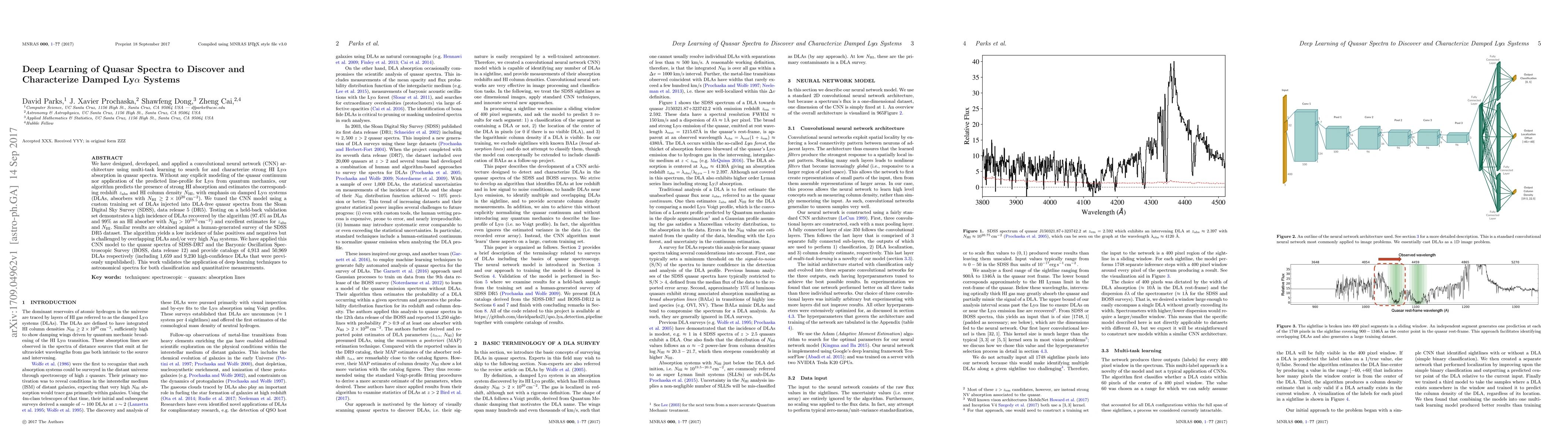 This paper presents a convolutional neural network (CNN) for identifying and characterizing damped Lya systems (DLAs) in quasar spectra, achieving high detection rates and accurate estimates of redshift and HI column density without explicit modeling of the quasar continuum. The CNN model, trained on SDSS DR5 data, successfully identifies DLAs in SDSS-DR7 and BOSS datasets, providing new catalogs of previously unpublished DLAs.
