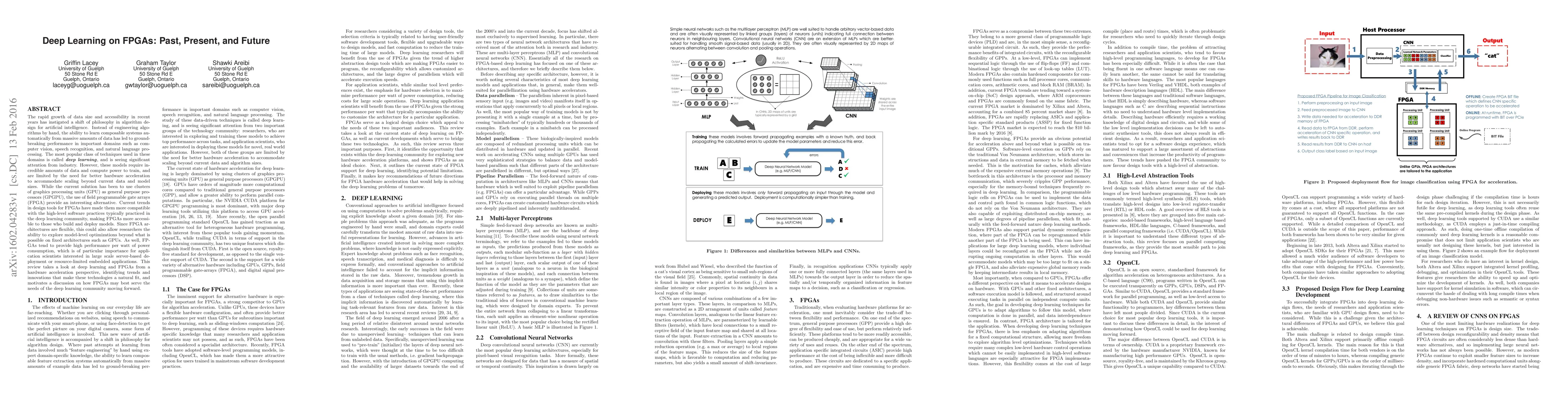 This paper reviews the integration of deep learning with FPGAs, highlighting how advancements in FPGA design tools make them a viable alternative to GPUs for accelerating deep learning tasks. It discusses the potential of FPGAs for model-level optimizations and their energy efficiency, positioning them as a promising solution for future deep learning applications.