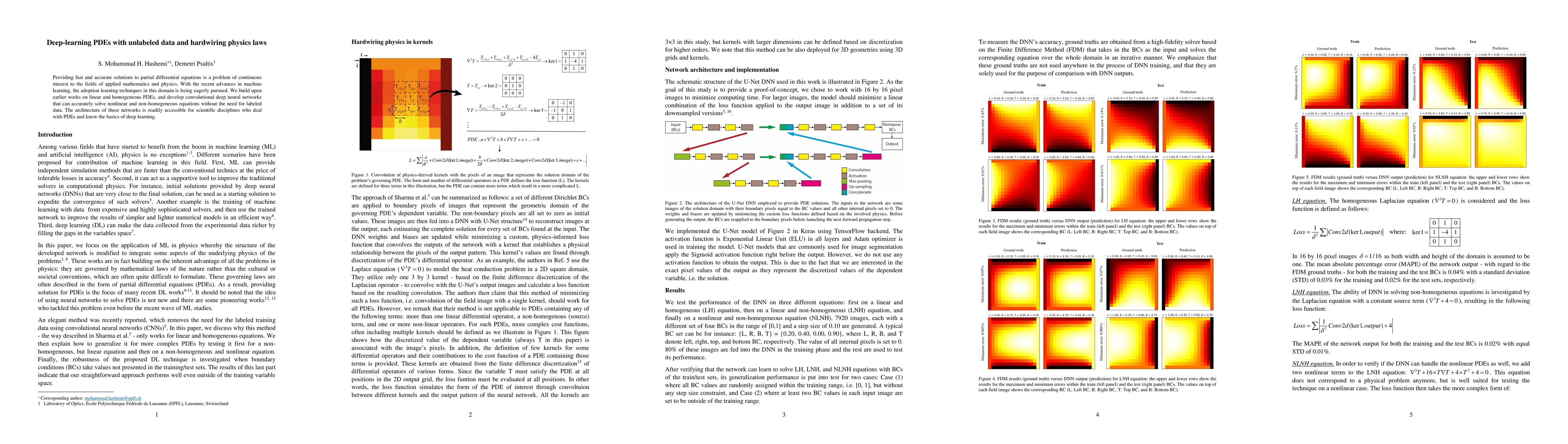 Providing fast and accurate solutions to partial differential equations is a problem of continuous interest to the fields of applied mathematics and physics. With the recent advances in machine learning, the adoption learning techniques in this domain is being eagerly pursued. We build upon earlier works on linear and homogeneous PDEs, and develop convolutional deep neural networks that can accurately solve nonlinear and non-homogeneous equations without the need for labeled data. The architecture of these networks is readily accessible for scientific disciplines who deal with PDEs and know the basics of deep learning.