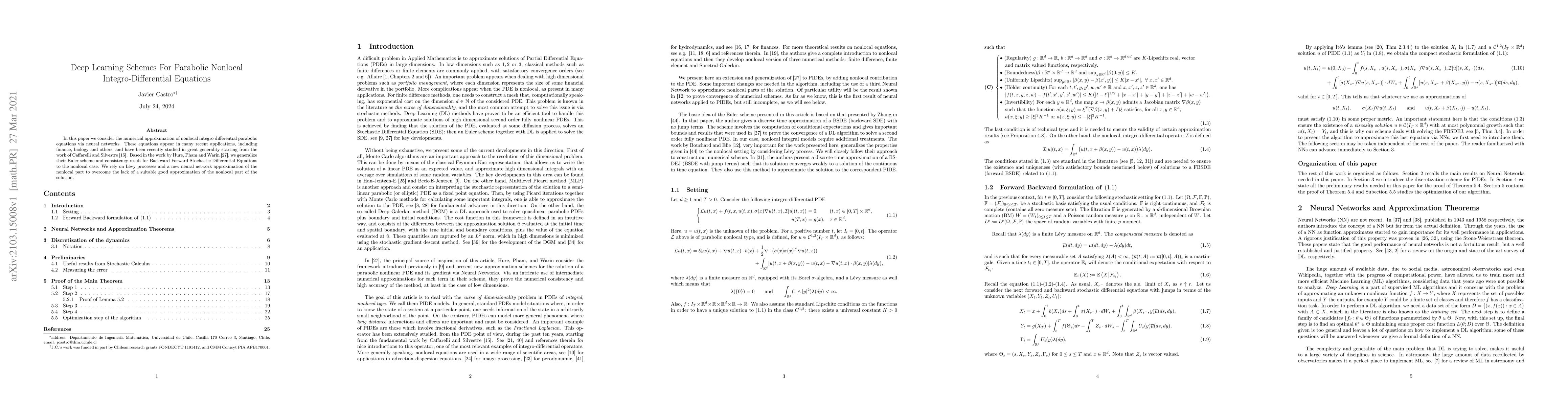 This paper proposes a deep learning approach for numerically approximating parabolic nonlocal integro-differential equations using neural networks. It generalizes existing Euler schemes for stochastic differential equations to handle the nonlocal aspects, leveraging L\`evy processes and novel neural network techniques to address the complexity of the nonlocal terms.