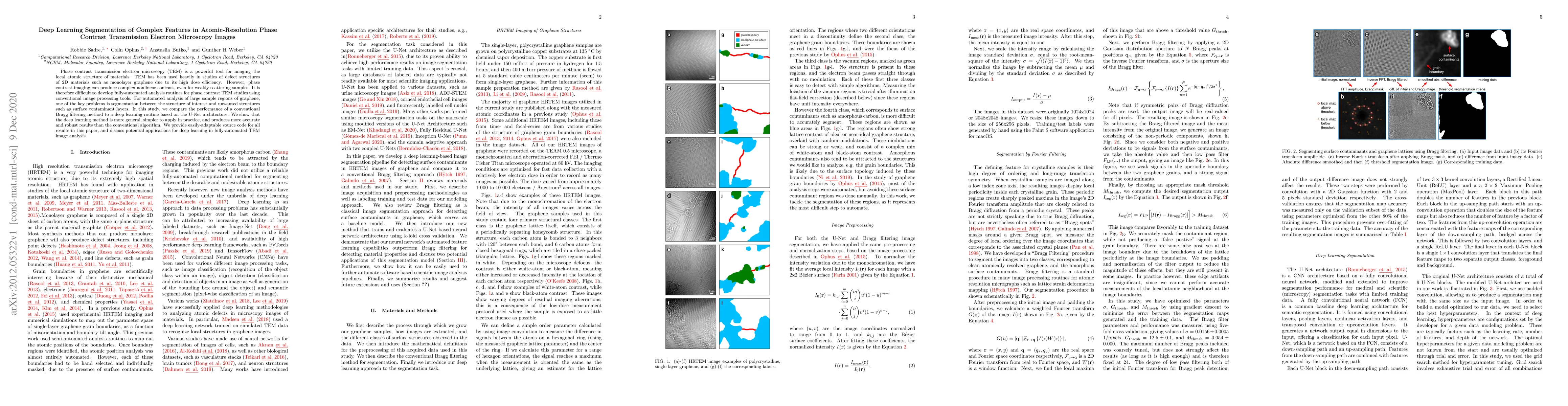 This paper compares a deep learning U-Net approach to a conventional Bragg filtering method for segmenting atomic-resolution phase contrast TEM images, demonstrating that the deep learning method is more accurate, robust, and easier to apply for automated analysis of graphene structures. The study provides adaptable source code for practical implementation.