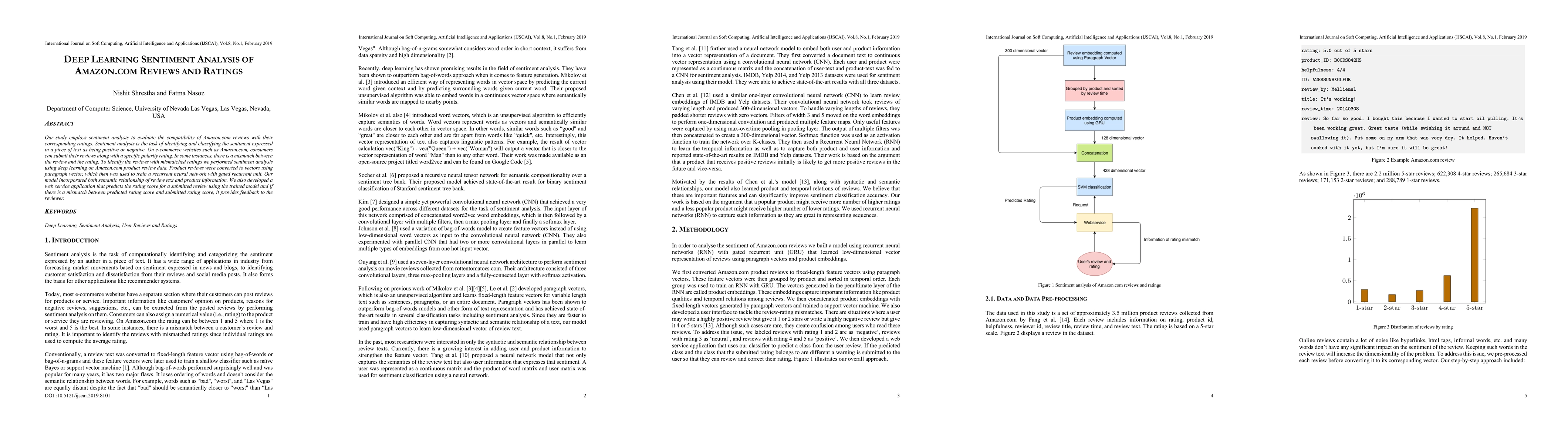 Our study employs sentiment analysis to evaluate the compatibility of Amazon.com reviews with their corresponding ratings. Sentiment analysis is the task of identifying and classifying the sentiment expressed in a piece of text as being positive or negative. On e-commerce websites such as Amazon.com, consumers can submit their reviews along with a specific polarity rating. In some instances, there is a mismatch between the review and the rating. To identify the reviews with mismatched ratings we performed sentiment analysis using deep learning on Amazon.com product review data. Product reviews were converted to vectors using paragraph vector, which then was used to train a recurrent neural network with gated recurrent unit. Our model incorporated both semantic relationship of review text and product information. We also developed a web service application that predicts the rating score for a submitted review using the trained model and if there is a mismatch between predicted rating score and submitted rating score, it provides feedback to the reviewer.