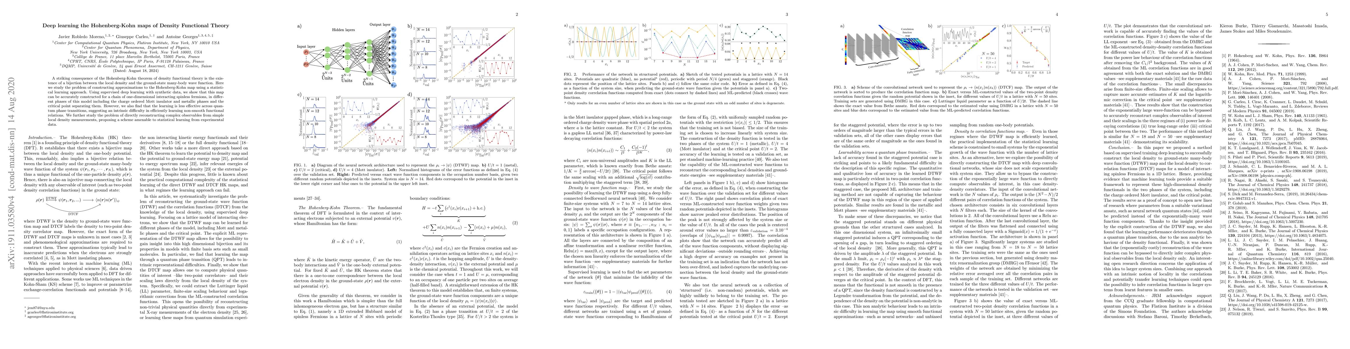 This paper explores the use of deep learning to approximate the Hohenberg-Kohn map in density functional theory, demonstrating accurate reconstructions for a one-dimensional spinless fermion chain across various phases. However, it highlights challenges in learning across quantum phase transitions, indicating inherent difficulties in capturing non-smooth functional relationships.