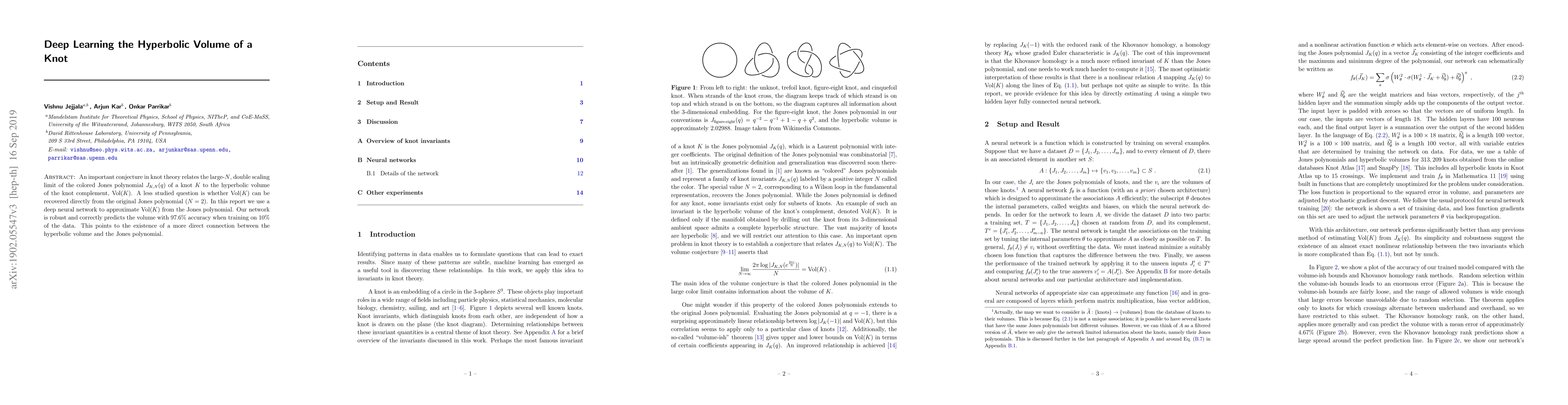 This paper explores using deep learning to approximate the hyperbolic volume of a knot directly from its Jones polynomial, achieving 97.6% accuracy with a neural network trained on a small subset of data, suggesting a potential deeper relationship between the hyperbolic volume and the Jones polynomial.