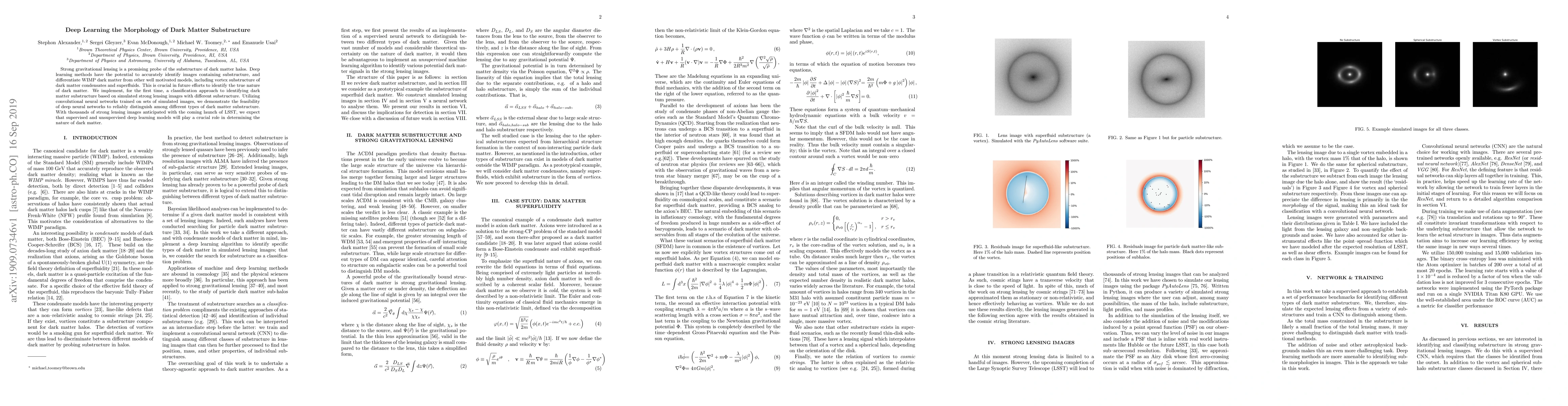 This paper explores the use of deep learning to identify and differentiate dark matter substructures using strong gravitational lensing images. The authors employ convolutional neural networks trained on simulated images to classify various types of dark matter substructures, demonstrating the potential of deep learning in uncovering the true nature of dark matter.