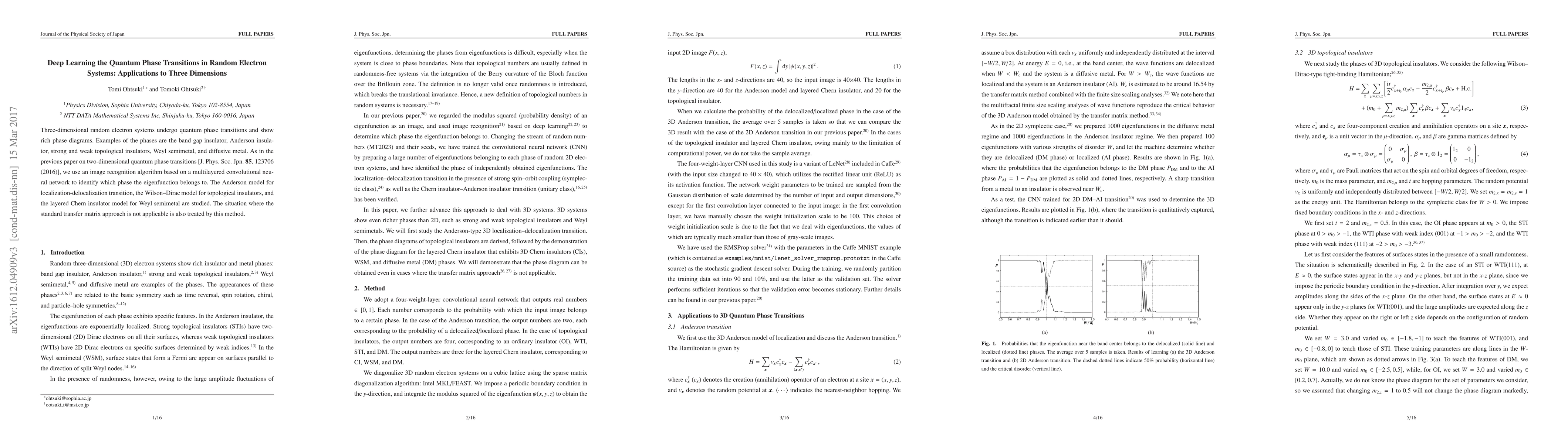 This paper employs deep learning techniques, specifically convolutional neural networks, to identify quantum phase transitions in three-dimensional random electron systems, analyzing phases such as band gap insulators, Anderson insulators, and topological insulators. The method effectively handles scenarios where traditional approaches are infeasible.