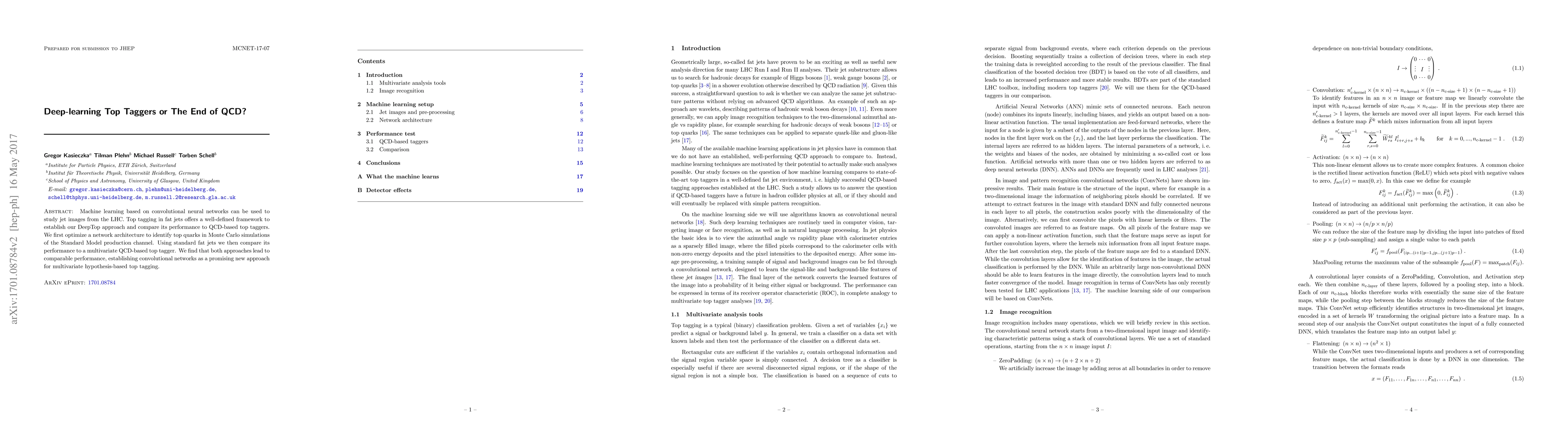 A new approach using convolutional neural networks outperforms traditional QCD-based methods for identifying top quarks in particle collisions, offering a promising alternative to current top tagging techniques.