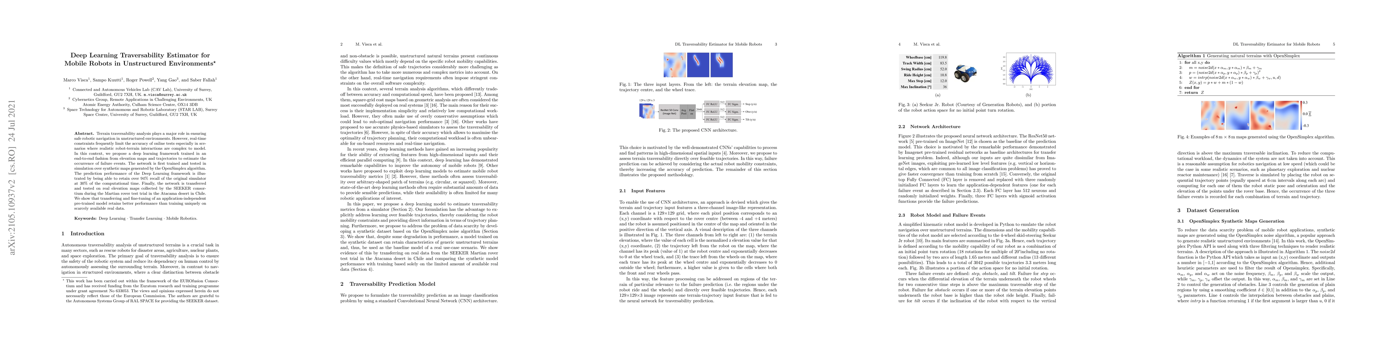 The paper introduces a deep learning-based traversability estimator for mobile robots in unstructured environments, utilizing transfer learning from synthetic data to real-world applications.