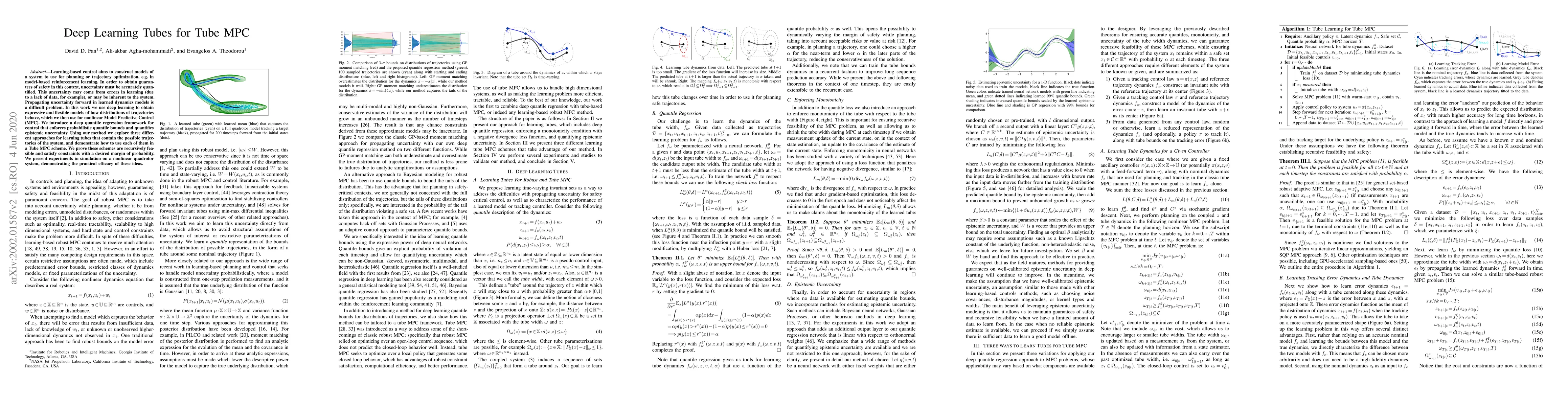 Learning-based control aims to construct models of a system to use for planning or trajectory optimization, e.g. in model-based reinforcement learning. In order to obtain guarantees of safety in this context, uncertainty must be accurately quantified. This uncertainty may come from errors in learning (due to a lack of data, for example), or may be inherent to the system. Propagating uncertainty forward in learned dynamics models is a difficult problem. In this work we use deep learning to obtain expressive and flexible models of how distributions of trajectories behave, which we then use for nonlinear Model Predictive Control (MPC). We introduce a deep quantile regression framework for control that enforces probabilistic quantile bounds and quantifies epistemic uncertainty. Using our method we explore three different approaches for learning tubes that contain the possible trajectories of the system, and demonstrate how to use each of them in a Tube MPC scheme. We prove these schemes are recursively feasible and satisfy constraints with a desired margin of probability. We present experiments in simulation on a nonlinear quadrotor system, demonstrating the practical efficacy of these ideas.