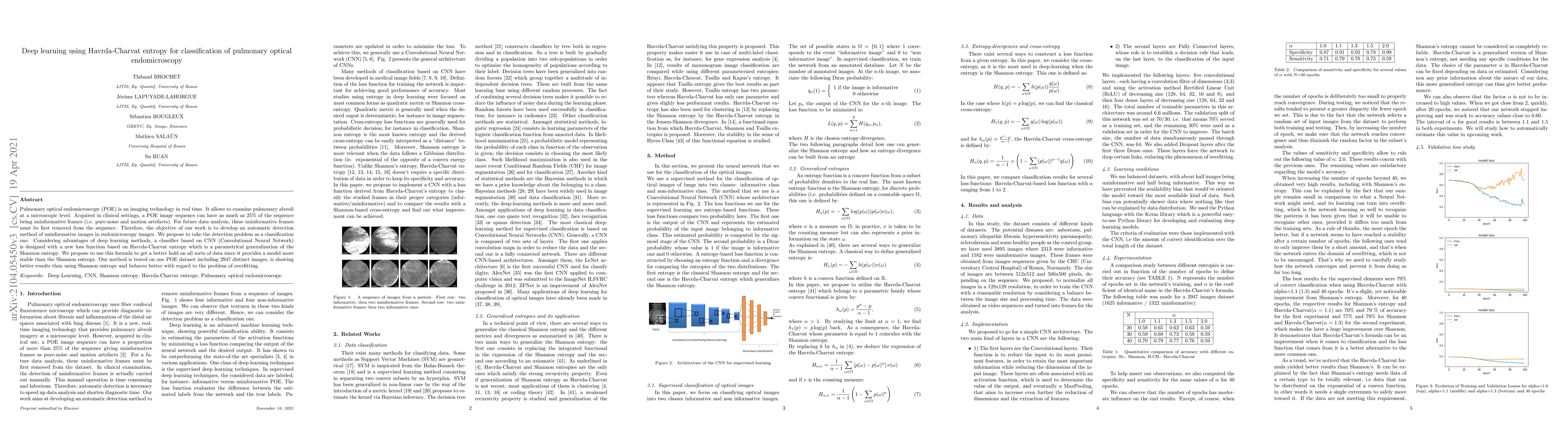 This research develops a deep learning method using Convolutional Neural Networks (CNN) with a novel loss function based on Havrda-Charvat entropy for classifying uninformative frames in pulmonary optical endomicroscopy (POE) images. The proposed method demonstrates improved performance over traditional Shannon entropy, showing better stability and reduced overfitting.