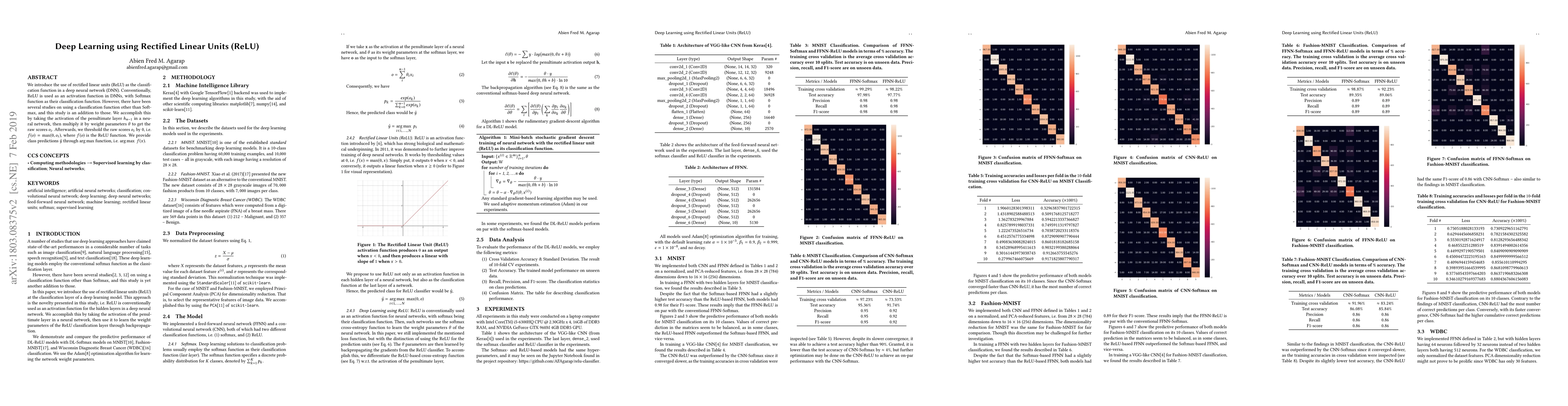 This paper explores using rectified linear units (ReLU) as the classification function in deep neural networks instead of the conventional Softmax function. It employs ReLU to threshold raw scores and uses the argmax function to provide final class predictions.