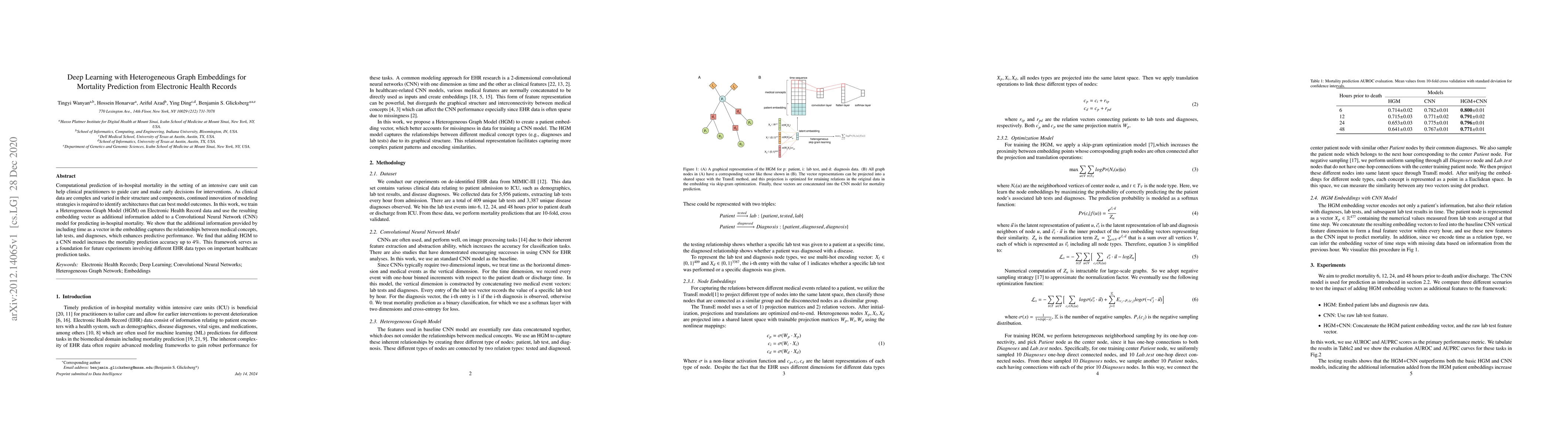 This research explores the use of a Heterogeneous Graph Model (HGM) combined with a Convolutional Neural Network (CNN) to predict in-hospital mortality in intensive care units. The study demonstrates that incorporating HGM embeddings into the CNN model enhances predictive accuracy by up to 4%, highlighting the potential of this approach for improving clinical decision-making.