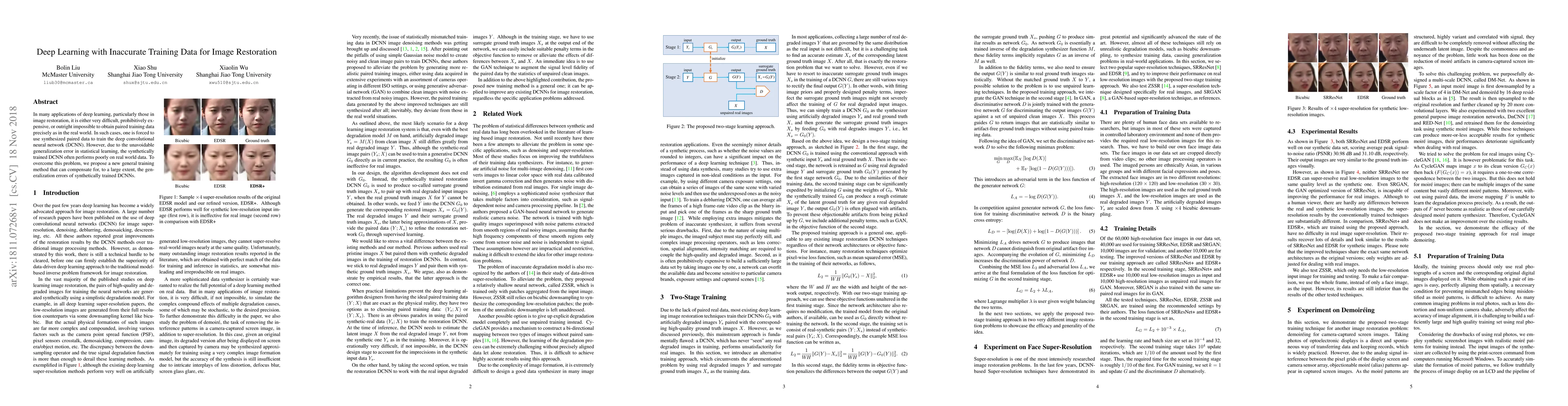 In many applications of deep learning, particularly those in image restoration, it is either very difficult, prohibitively expensive, or outright impossible to obtain paired training data precisely as in the real world. In such cases, one is forced to use synthesized paired data to train the deep convolutional neural network (DCNN). However, due to the unavoidable generalization error in statistical learning, the synthetically trained DCNN often performs poorly on real world data. To overcome this problem, we propose a new general training method that can compensate for, to a large extent, the generalization errors of synthetically trained DCNNs.