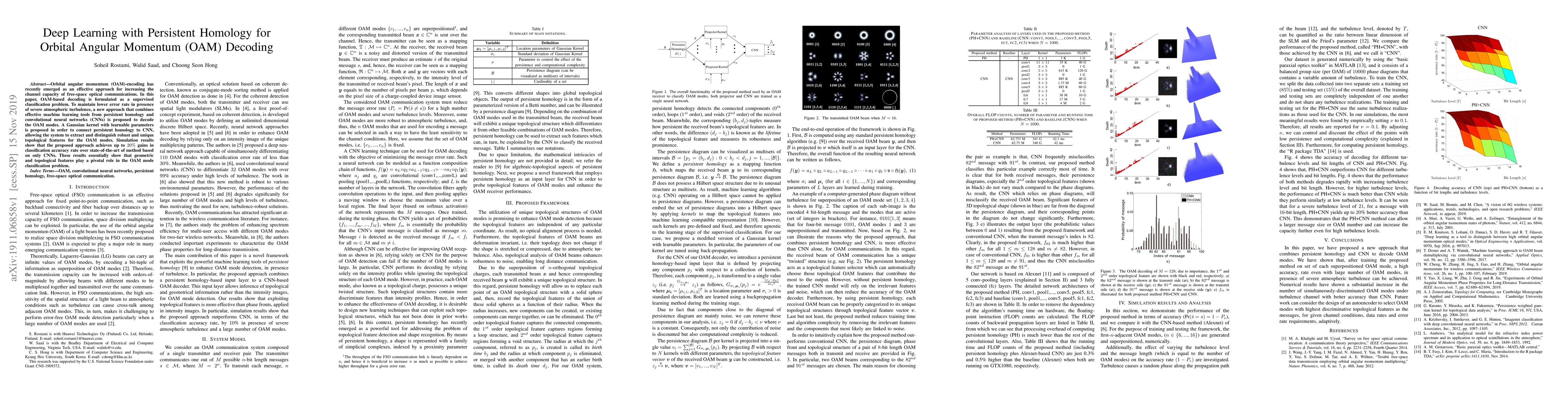 Orbital angular momentum (OAM)-encoding has recently emerged as an effective approach for increasing the channel capacity of free-space optical communications. In this paper, OAM-based decoding is formulated as a supervised classification problem. To maintain lower error rate in presence of severe atmospheric turbulence, a new approach that combines effective machine learning tools from persistent homology and convolutional neural networks (CNNs) is proposed to decode the OAM modes. A Gaussian kernel with learnable parameters is proposed in order to connect persistent homology to CNN, allowing the system to extract and distinguish robust and unique topological features for the OAM modes. Simulation results show that the proposed approach achieves up to 20% gains in classification accuracy rate over state-of-the-art of method based on only CNNs. These results essentially show that geometric and topological features play a pivotal role in the OAM mode classification problem.