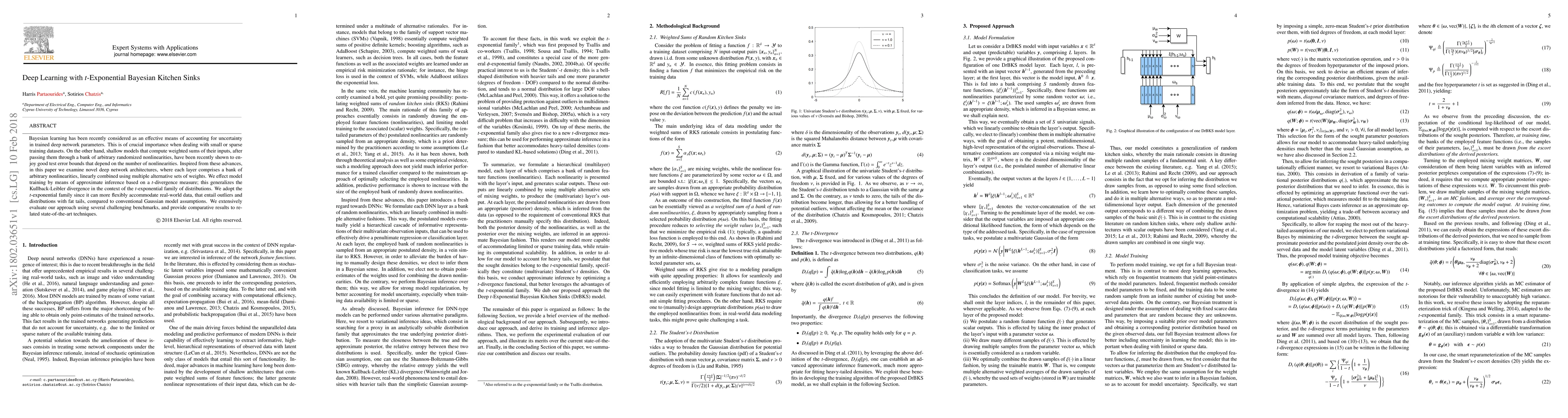 Bayesian learning has been recently considered as an effective means of accounting for uncertainty in trained deep network parameters. This is of crucial importance when dealing with small or sparse training datasets. On the other hand, shallow models that compute weighted sums of their inputs, after passing them through a bank of arbitrary randomized nonlinearities, have been recently shown to enjoy good test error bounds that depend on the number of nonlinearities. Inspired from these advances, in this paper we examine novel deep network architectures, where each layer comprises a bank of arbitrary nonlinearities, linearly combined using multiple alternative sets of weights. We effect model training by means of approximate inference based on a t-divergence measure; this generalizes the Kullback-Leibler divergence in the context of the t-exponential family of distributions. We adopt the t-exponential family since it can more flexibly accommodate real-world data, that entail outliers and distributions with fat tails, compared to conventional Gaussian model assumptions. We extensively evaluate our approach using several challenging benchmarks, and provide comparative results to related state-of-the-art techniques.