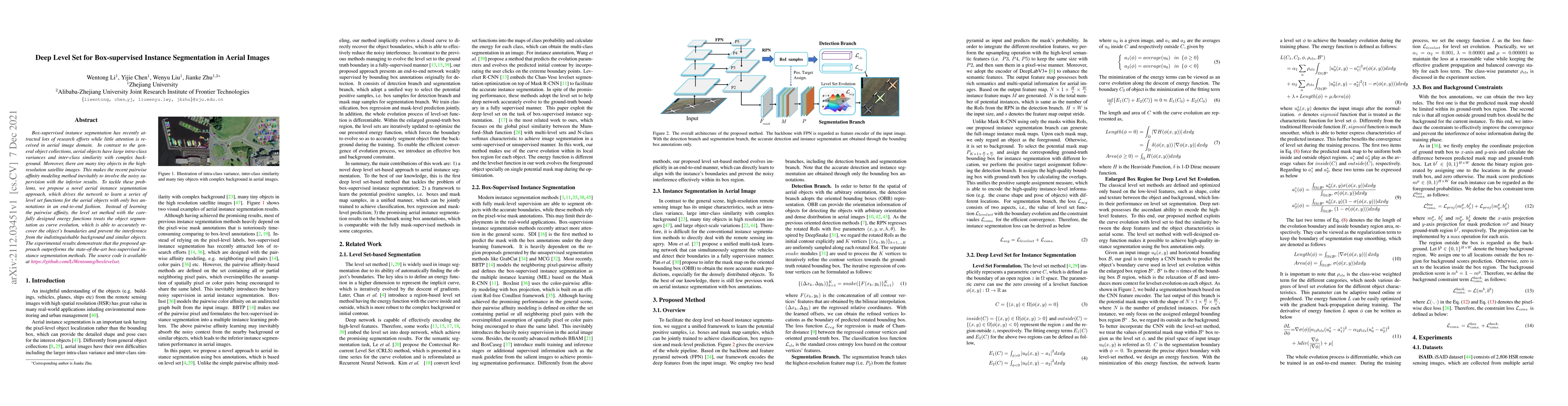This paper proposes a novel deep level set method for box-supervised instance segmentation in aerial images, addressing the challenges of large intra-class variances and inter-class similarities. The approach learns level set functions to accurately delineate object boundaries, outperforming existing methods.