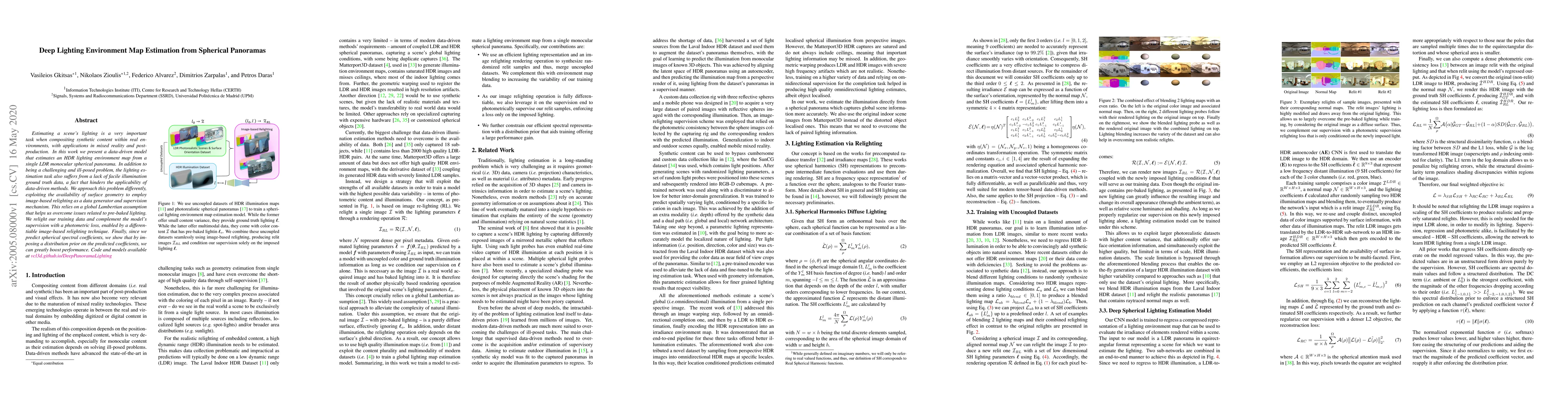 A new method estimates HDR lighting from a single monocular spherical panorama using image-based relighting and distribution priors, overcoming challenges of ill-posedness and lack of ground truth data.