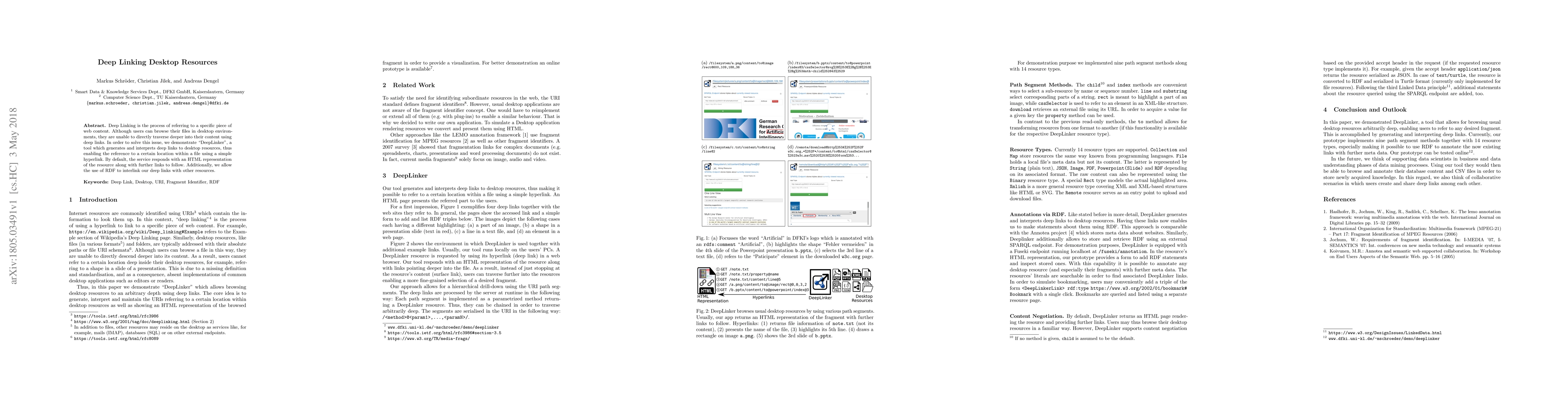Deep Linking is the process of referring to a specific piece of web content. Although users can browse their files in desktop environments, they are unable to directly traverse deeper into their content using deep links. In order to solve this issue, we demonstrate "DeepLinker", a tool which generates and interprets deep links to desktop resources, thus enabling the reference to a certain location within a file using a simple hyperlink. By default, the service responds with an HTML representation of the resource along with further links to follow. Additionally, we allow the use of RDF to interlink our deep links with other resources.